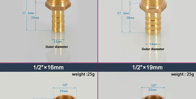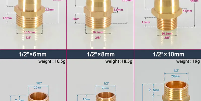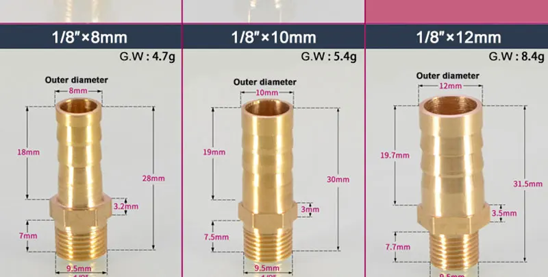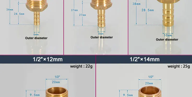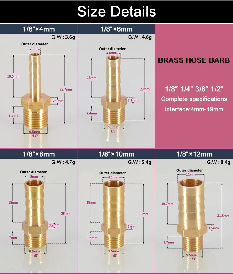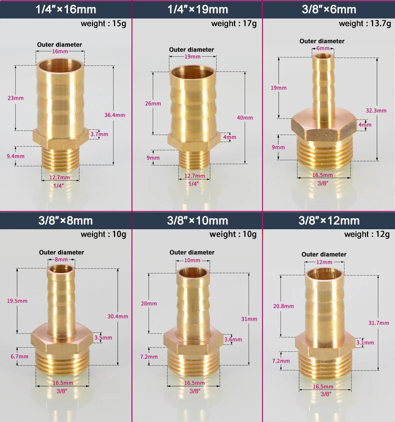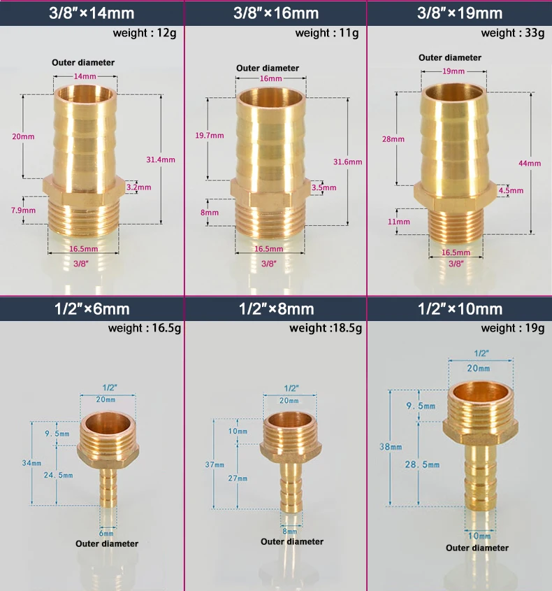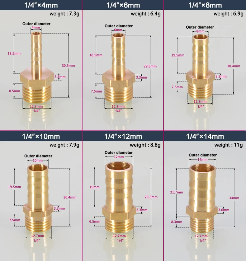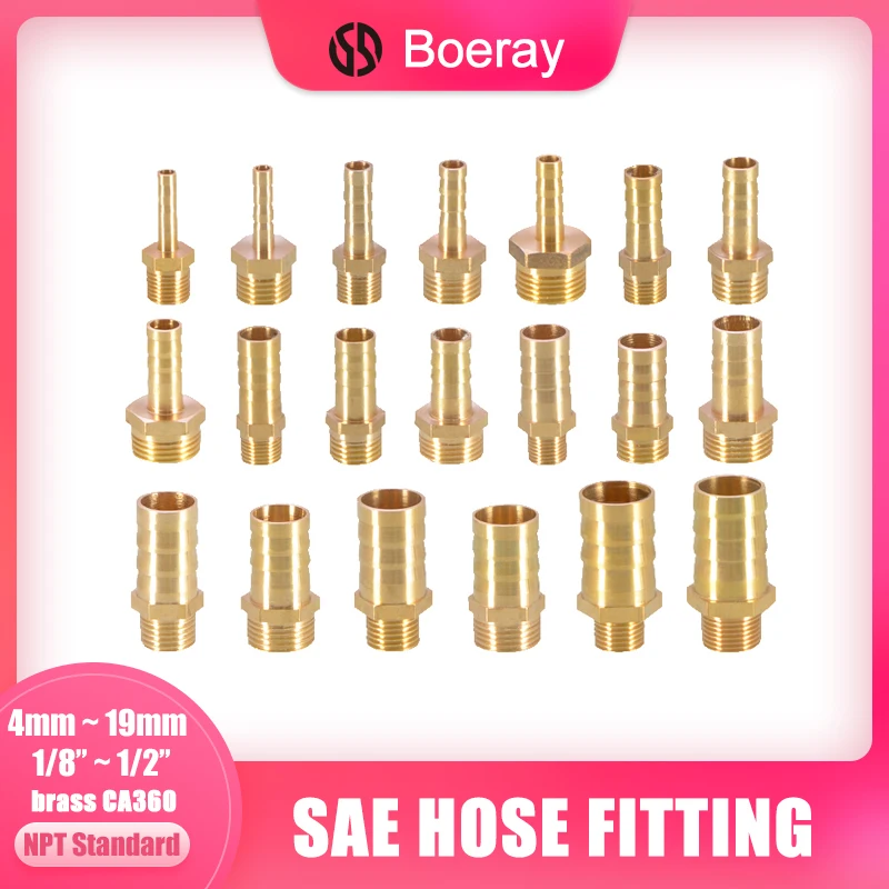 Латунный фитинг для труб 4 мм, 6 мм, 8 мм, 10 мм, 12 мм, 19 мм, Хвостовик с зазубринами для шланга 18 дюйма, 14 дюйма, 12 дюйма, 38 дюйма, переходник с наружным соединителем