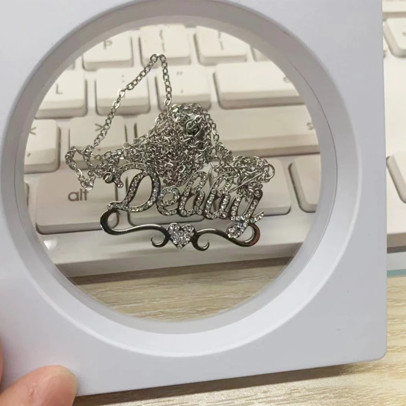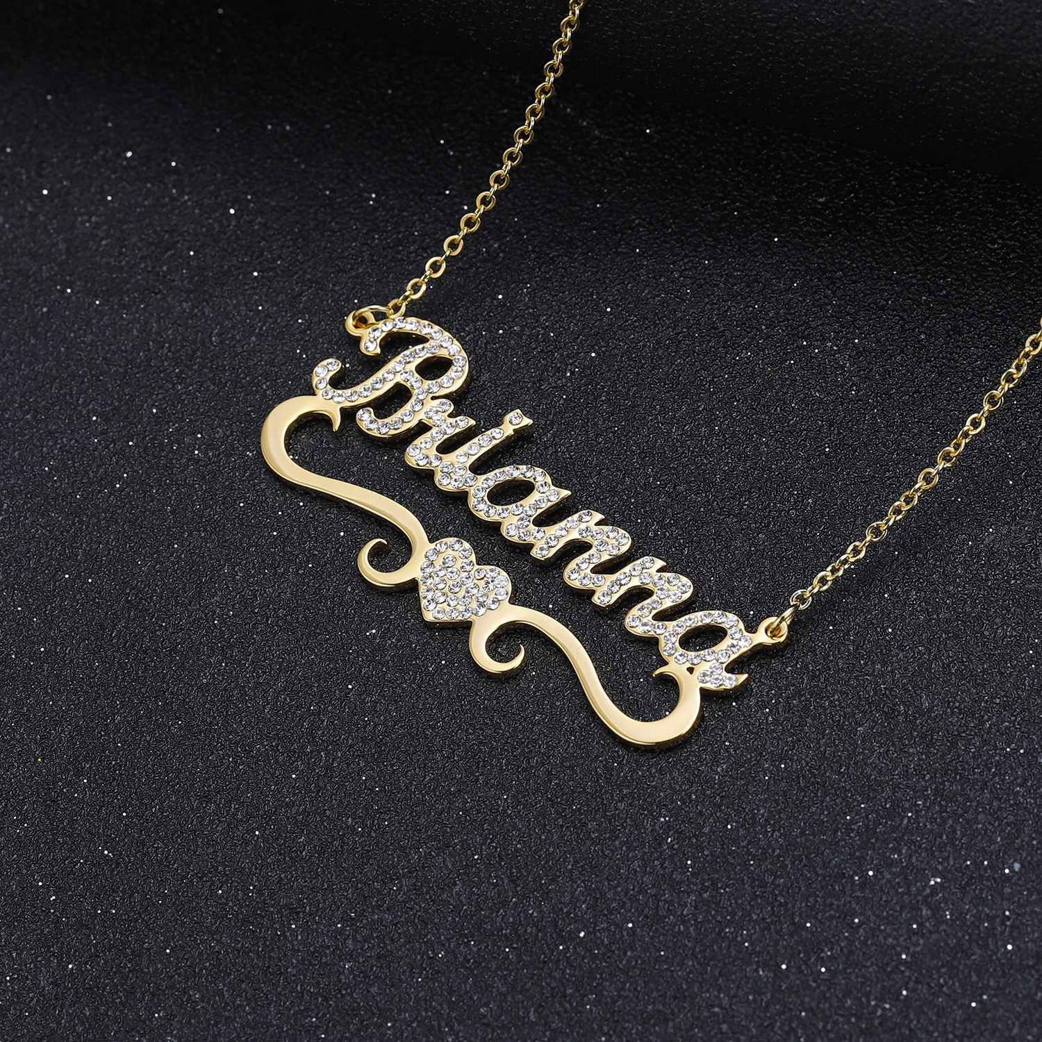 Ожерелье с персонализированным именем в форме сердца для женщин, Золотая подвеска из нержавеющей стали с блестками, персонализированное ожерелье со стразами