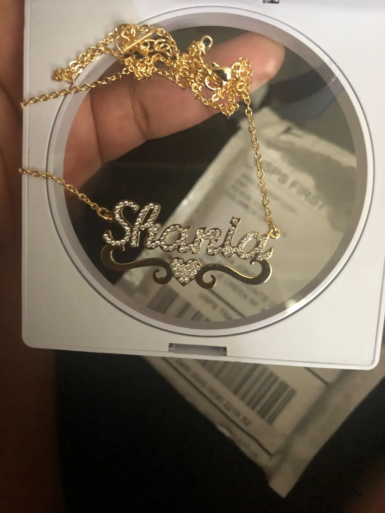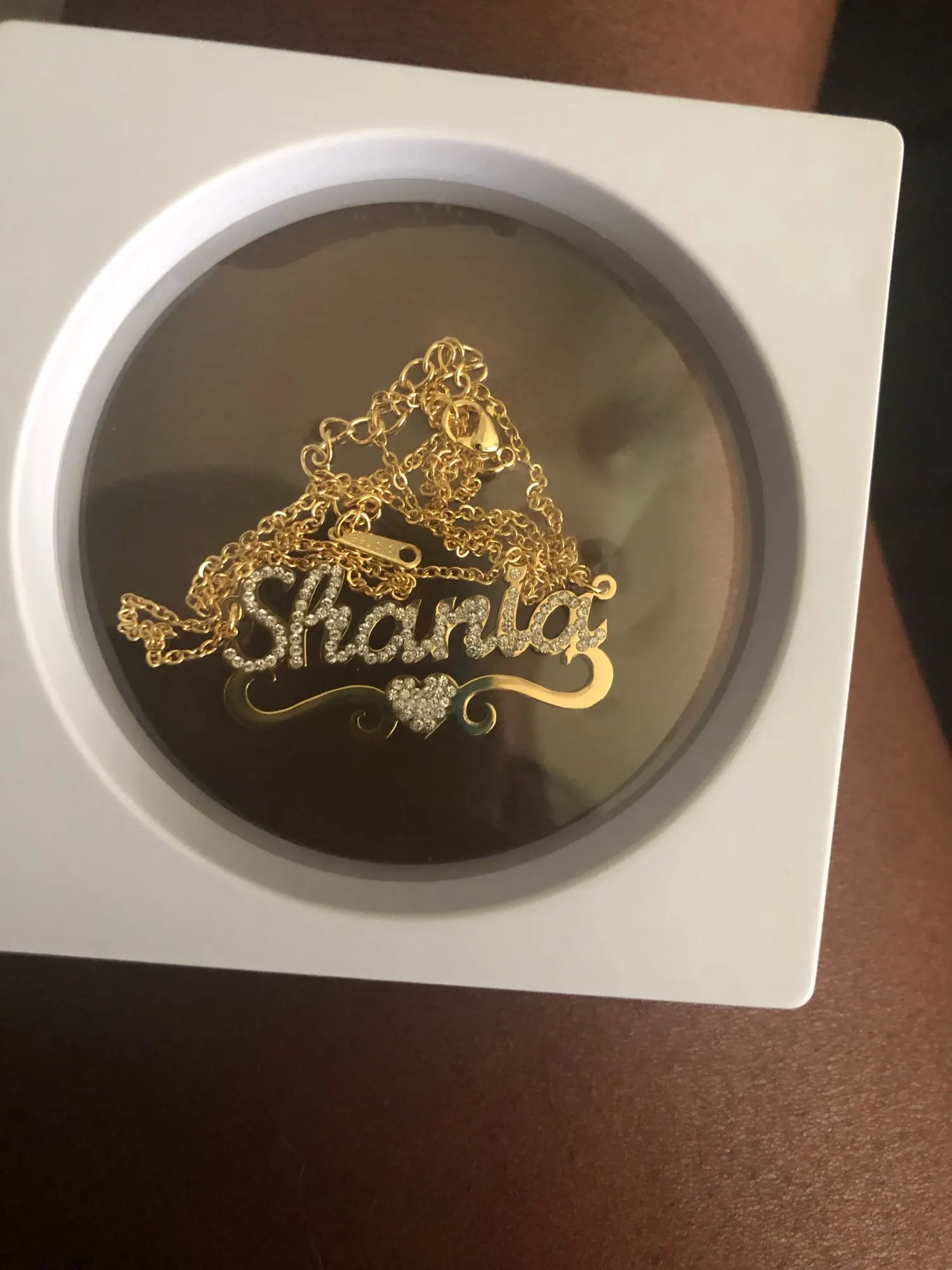 Я дал этой табличке пять звезд. Выглядит как настоящее золото, и оно точно сделано с осторожностью. Он очень блестящий, и стразы сверкают в свете. Цена потрясающая для работы, которая входит в эту табличку с именем. Моя девушка любит его, у нее был один, когда она была молодой, но потерялась. Большое спасибо за то, что сделали такое красивое ожерелье.