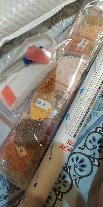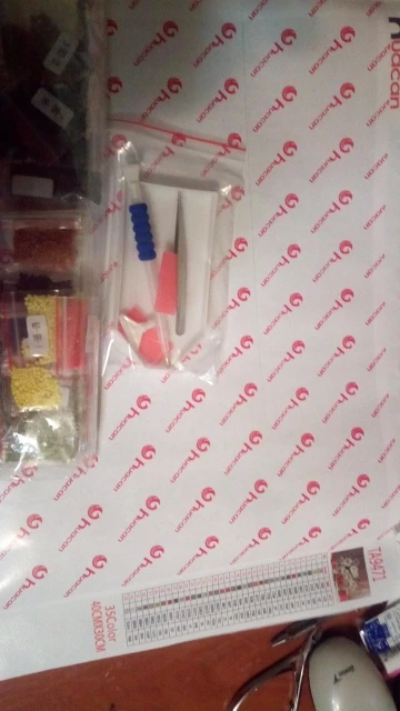 Посылочка пришла во время, аккуратно упакована. Схема намотана на валик, пропечатка чёткая, хорошо читается, стразики упакованы в зиппакеты. Спасибо продавцу, рекомендую!