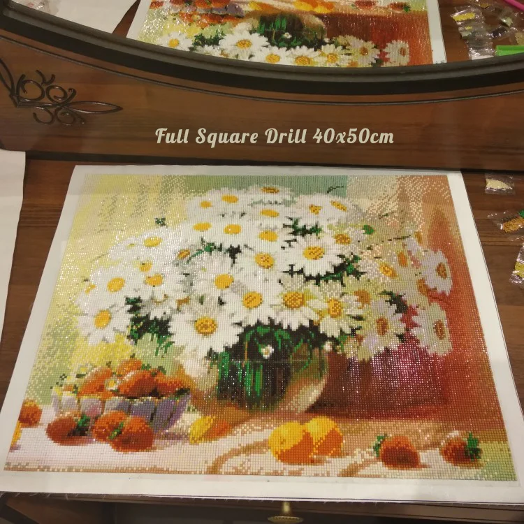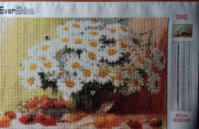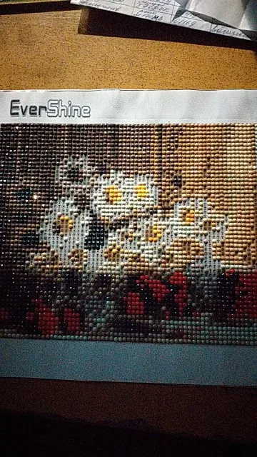 мои любимые ромашки! упаковано хорошо,пришли вовремя.уверена,что всё получится красиво! всем рекомендую заняться алмазной мозаикой.меня уже затянуло,как наркотик.оченнь успакаивает.