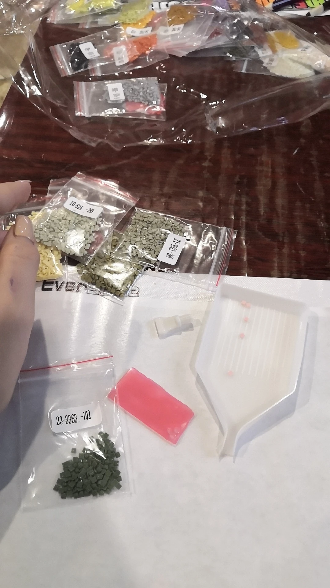 Доставка очень быстрая. 2 недели до Самары. Комплектация полная. Алмазов много. Собирать пока не начала. Позже дополню отзыв. Продавца рекомендую!!!