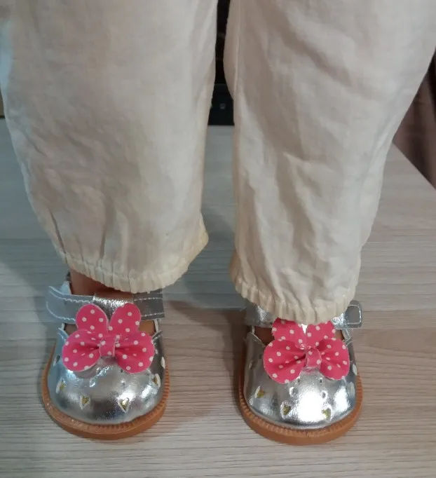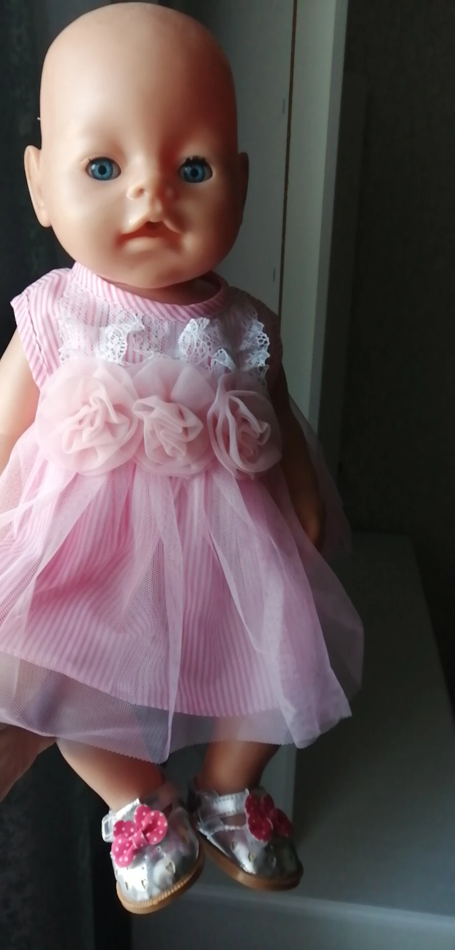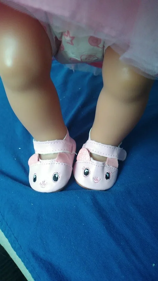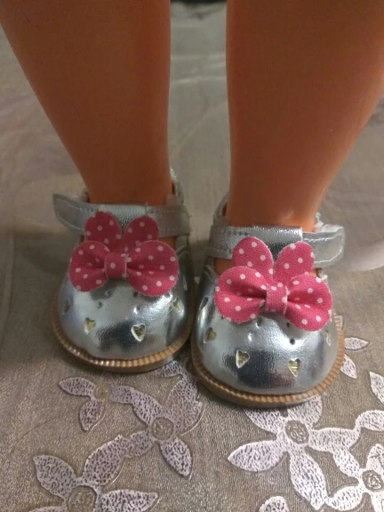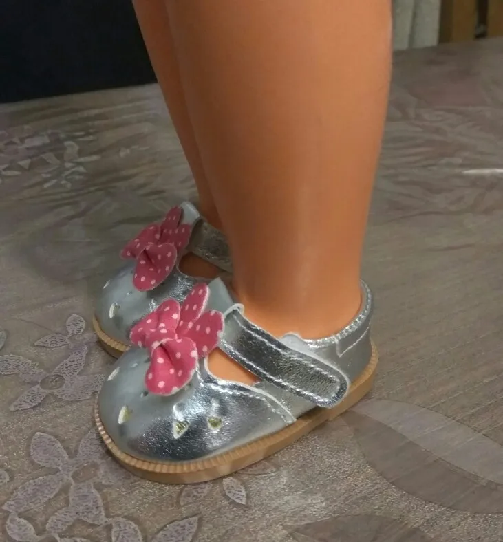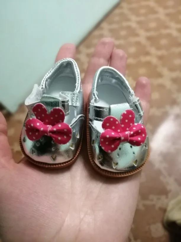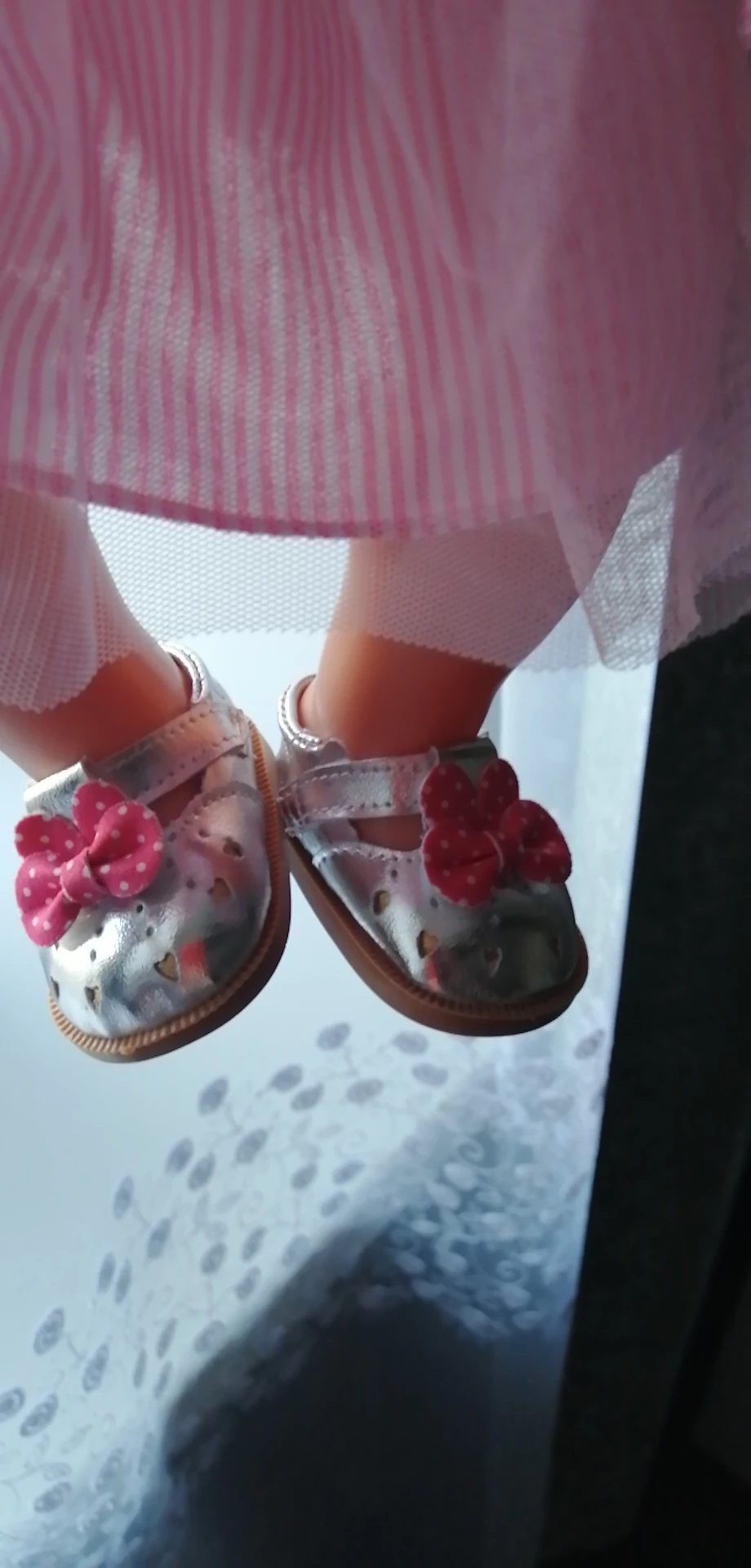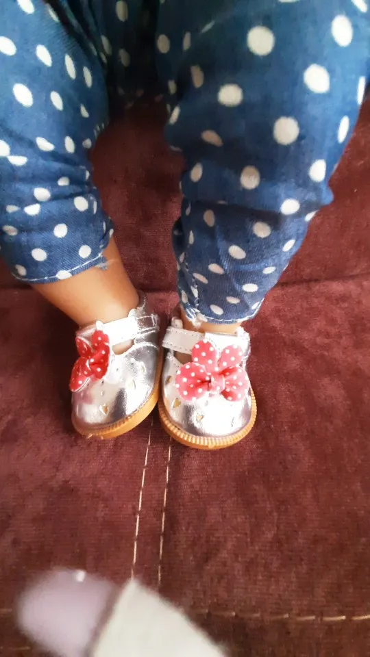 К сожаленью на пупса 43 см не подошли , залезли только на куклу 36 см . Туфельки чудесные