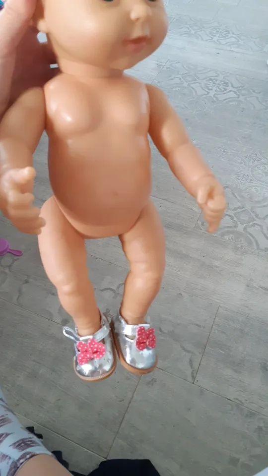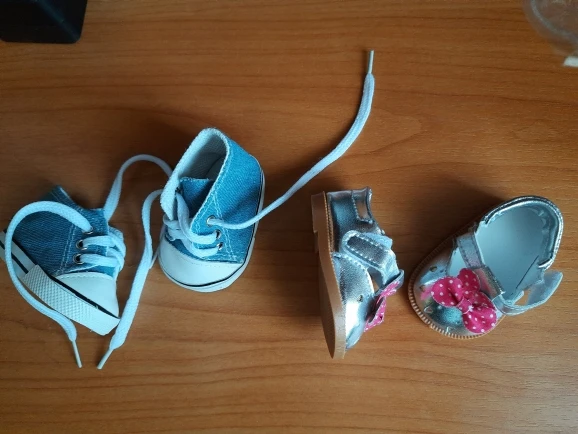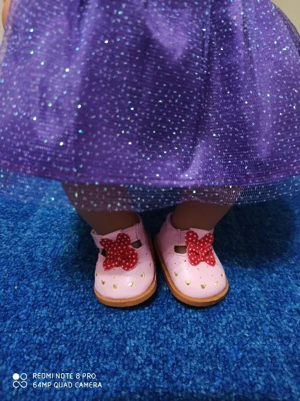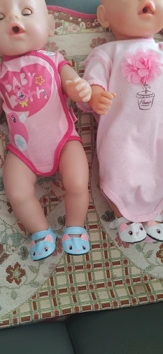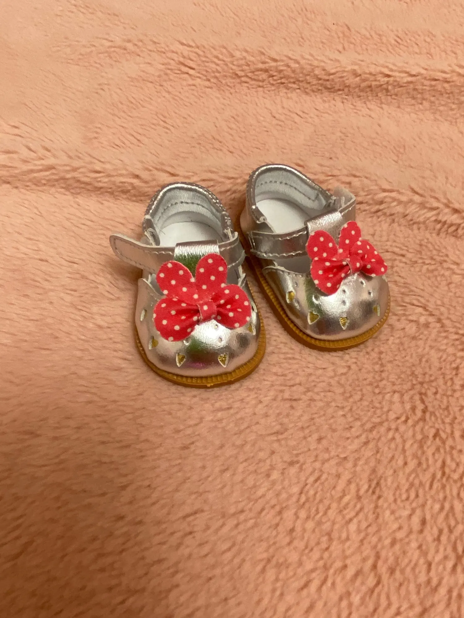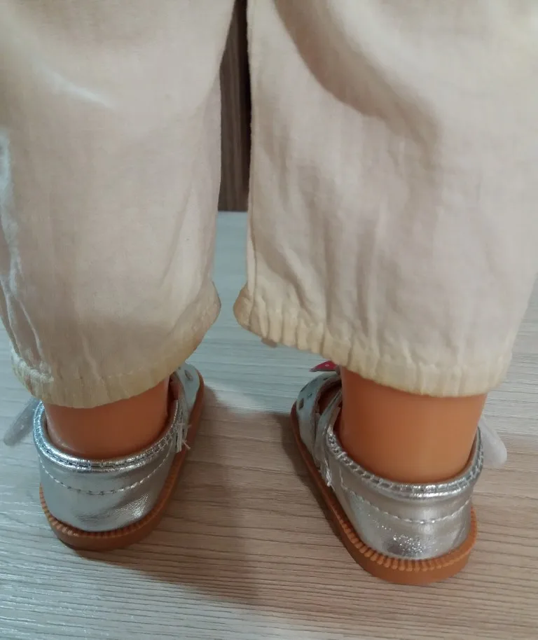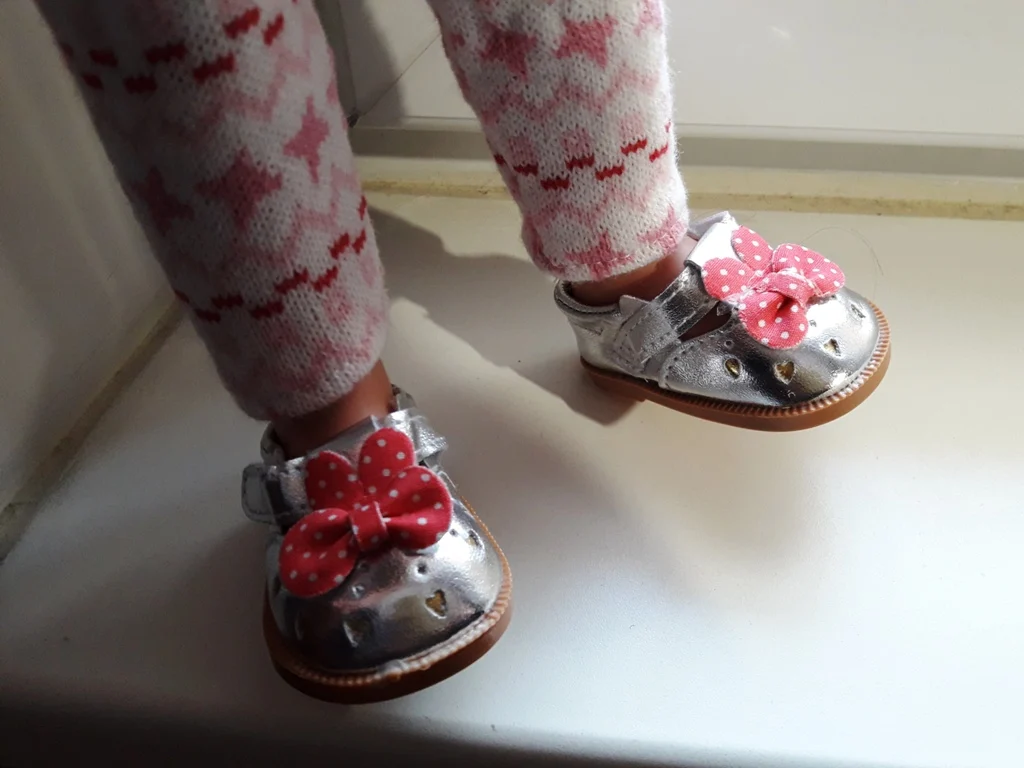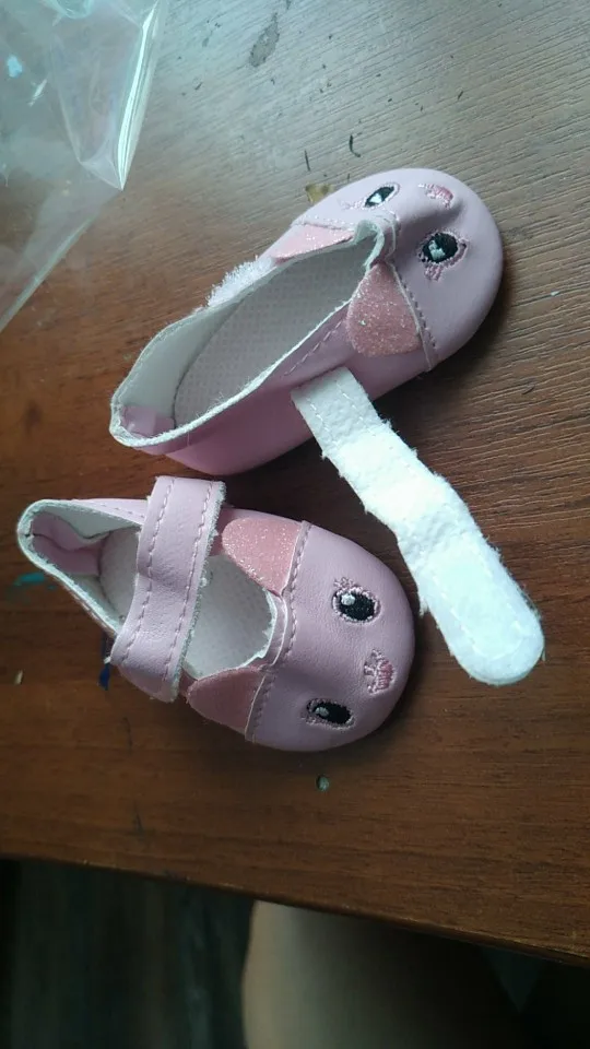 К сожаленью на пупса 43 см не подошли , залезли только на куклу 36 см . Туфельки чудесные