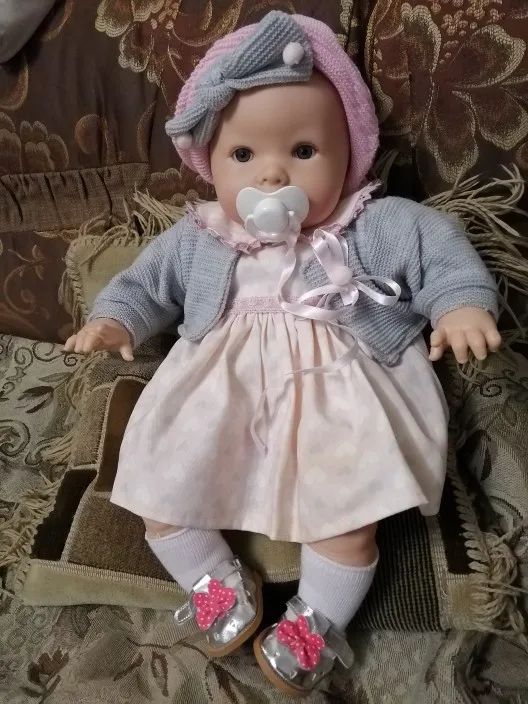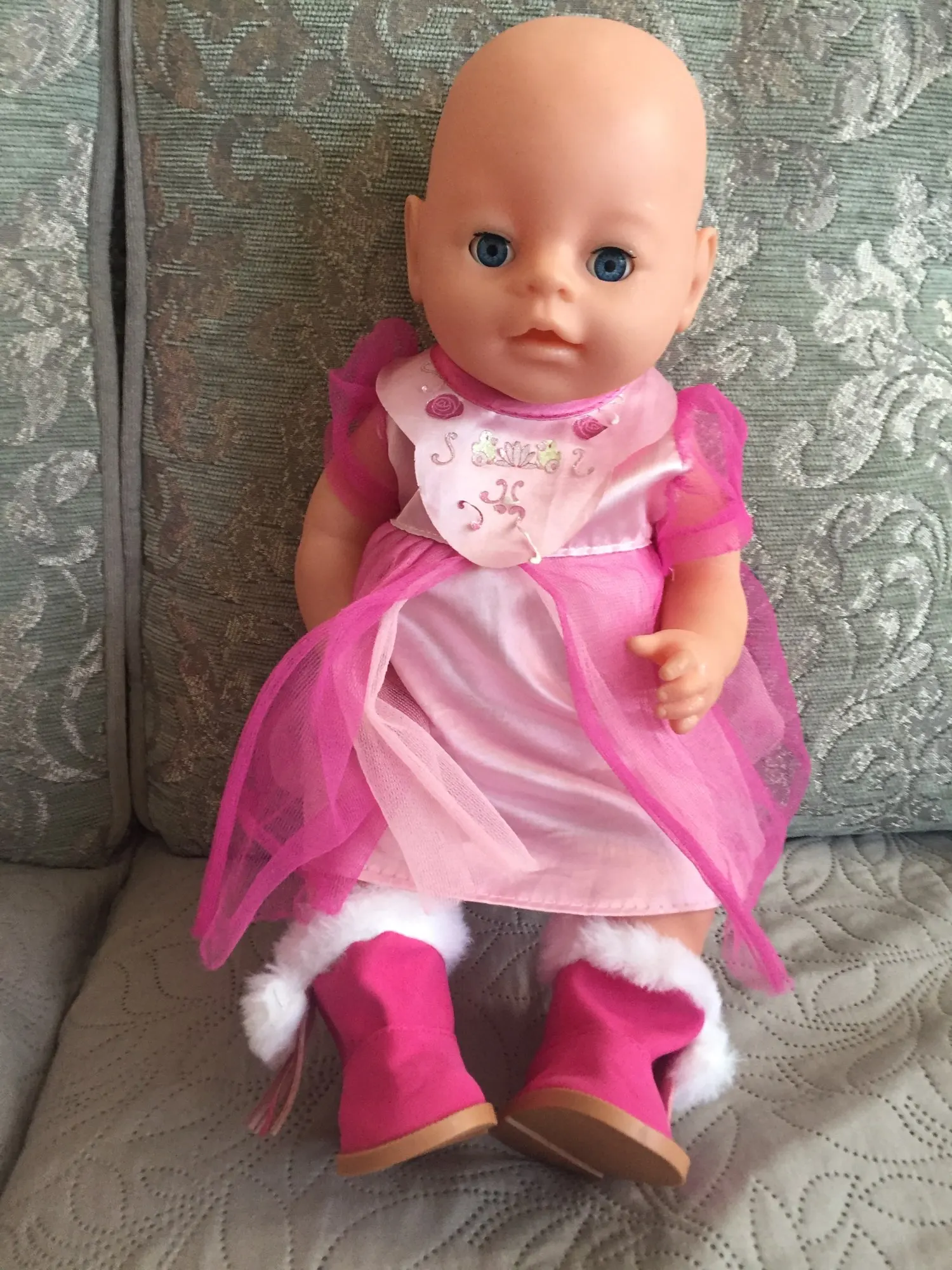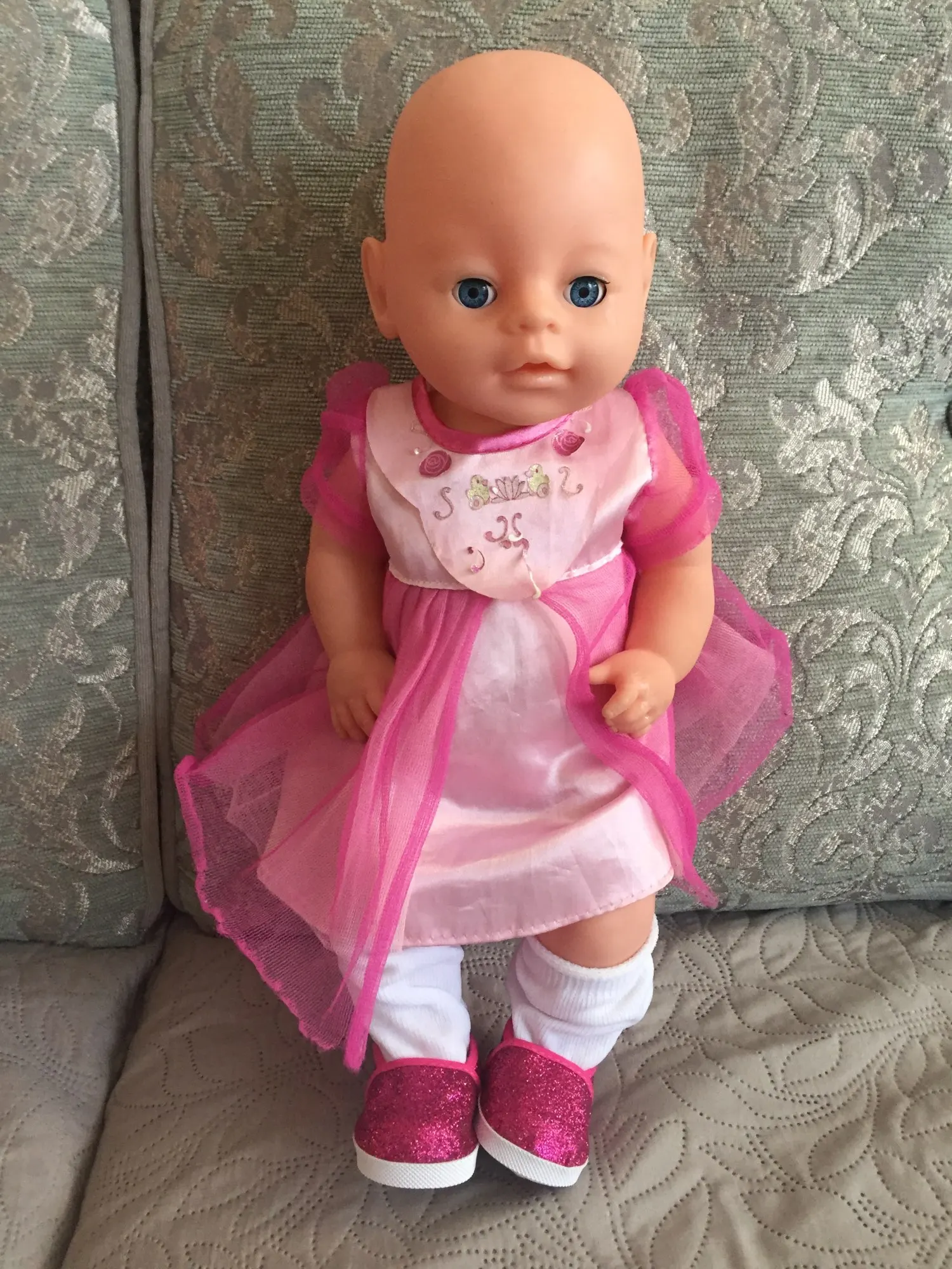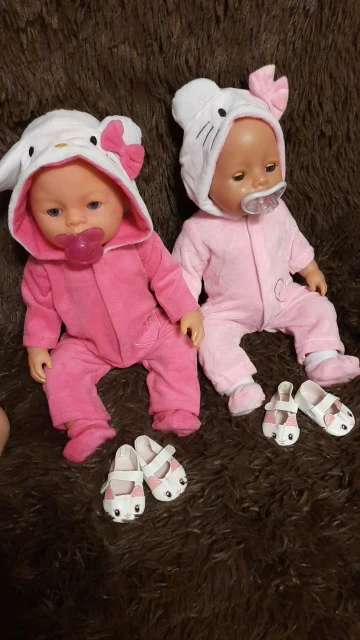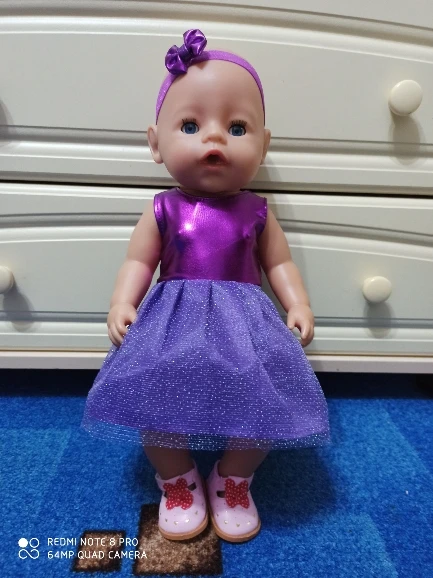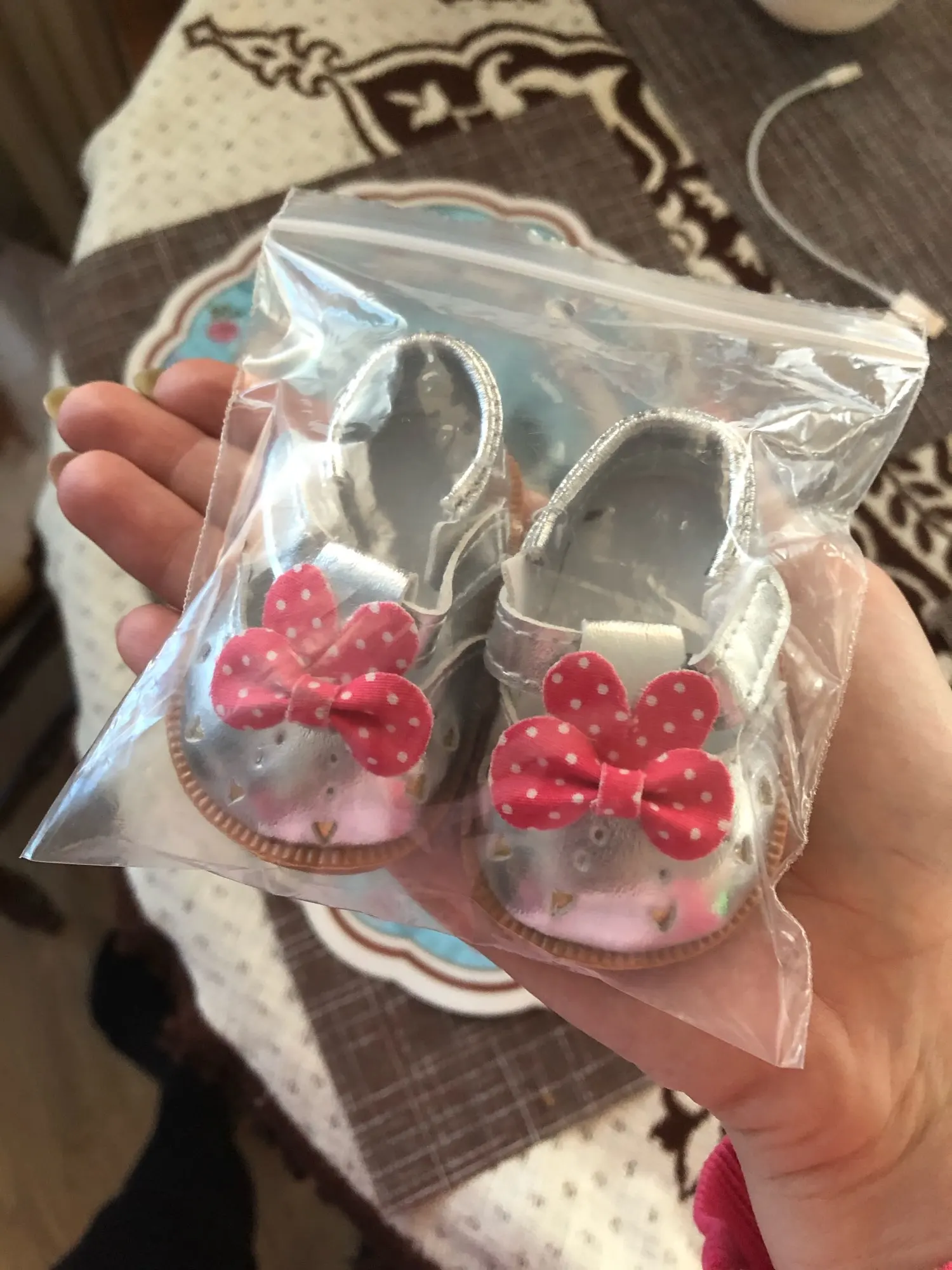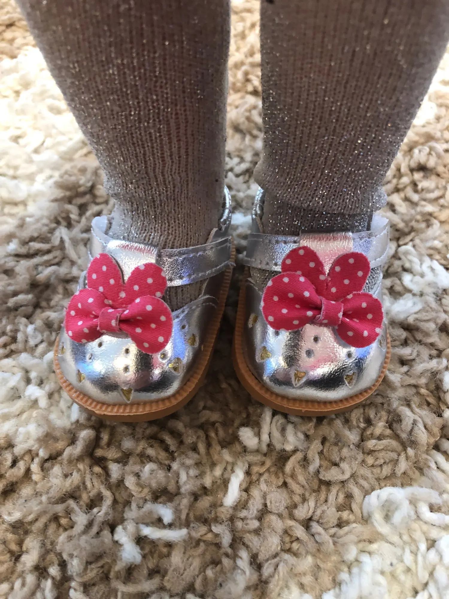 К сожаленью на пупса 43 см не подошли , залезли только на куклу 36 см . Туфельки чудесные