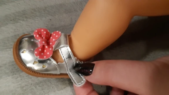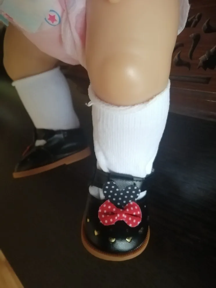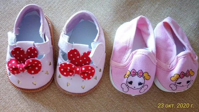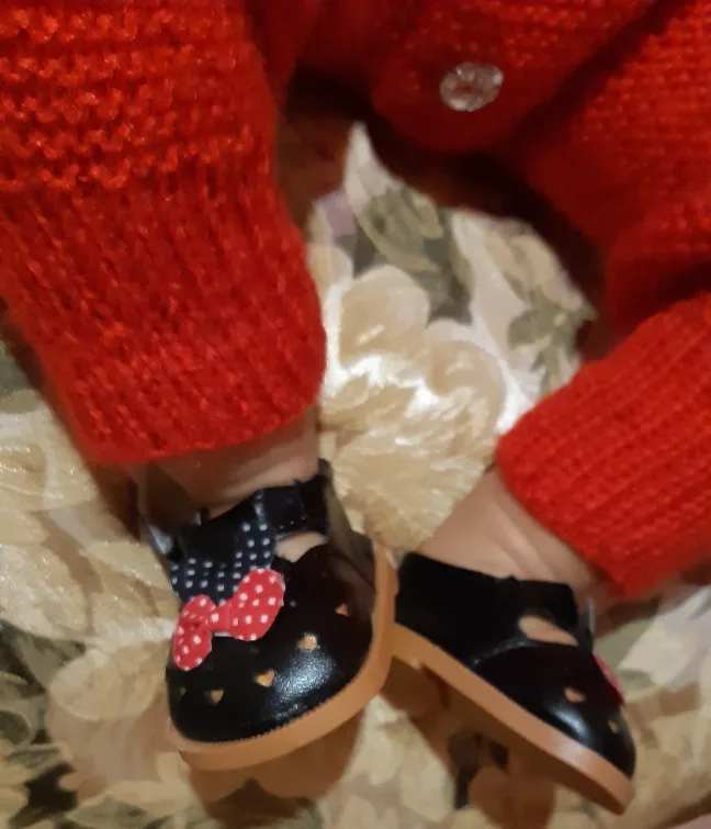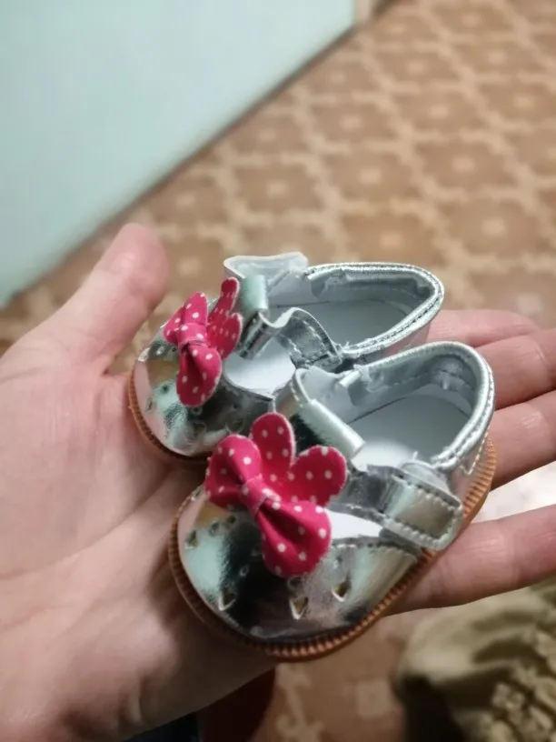 Очень красивые и качественные туфельки. Как на ребёнка,только в миниатюре. Немного великоваты на голую ножку бэби бона,с колготками или носочком отлично!В Беларусь пришли за полтора месяца. Рекомендую товар и продавца.