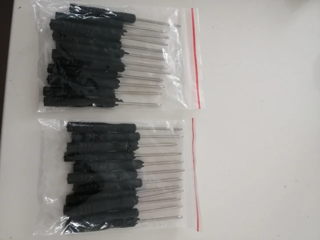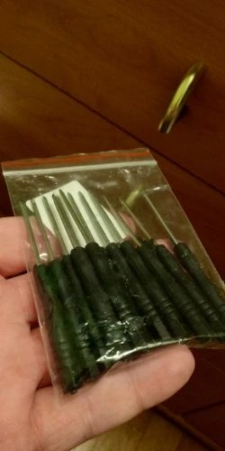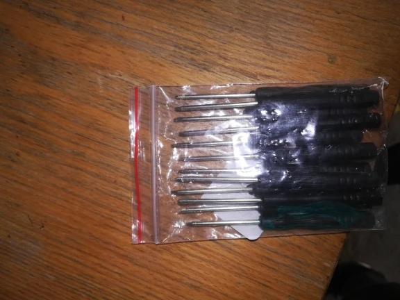 От оформления заказа до получения на почте, чуть меньше месяца. Комплект отвёрток из 12 штук соответствует описанию. Отвёртки неплохие, для маленьких винтов или саморезов подходят классно. Но, думаю, изготовление кустарное, так как облой от пластмассы не убран. Нельзя клиентам в другую страну отправлять товары в таком виде. На фотографии хорошо видно. За это снял звезду. А, в общем, неплохо. Покупал за 91 рубль