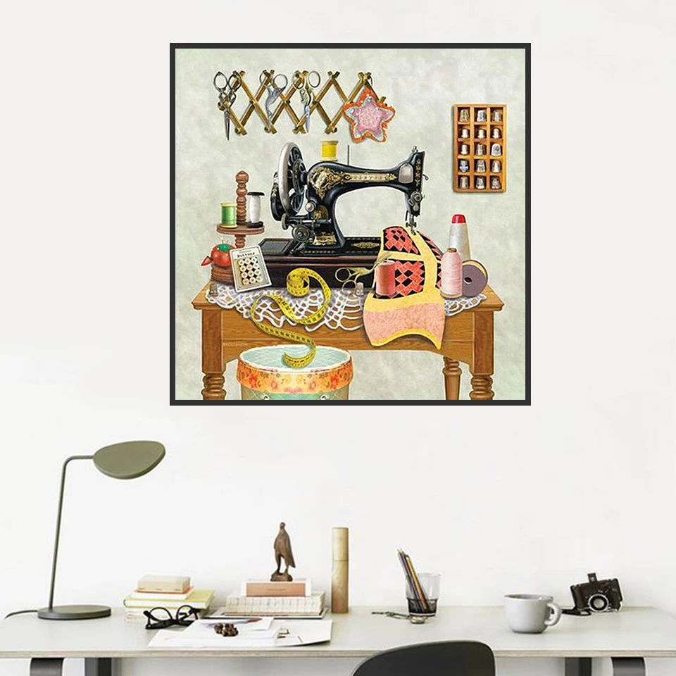 Diamond Mosaic TypeDiamond Painting Cartoon Sewing Machine