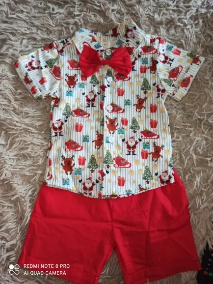 Летняя Рождественская Одежда для маленьких мальчиков; Футболка с героями мультфильмов и шорты; Красный праздничный комплект одежды