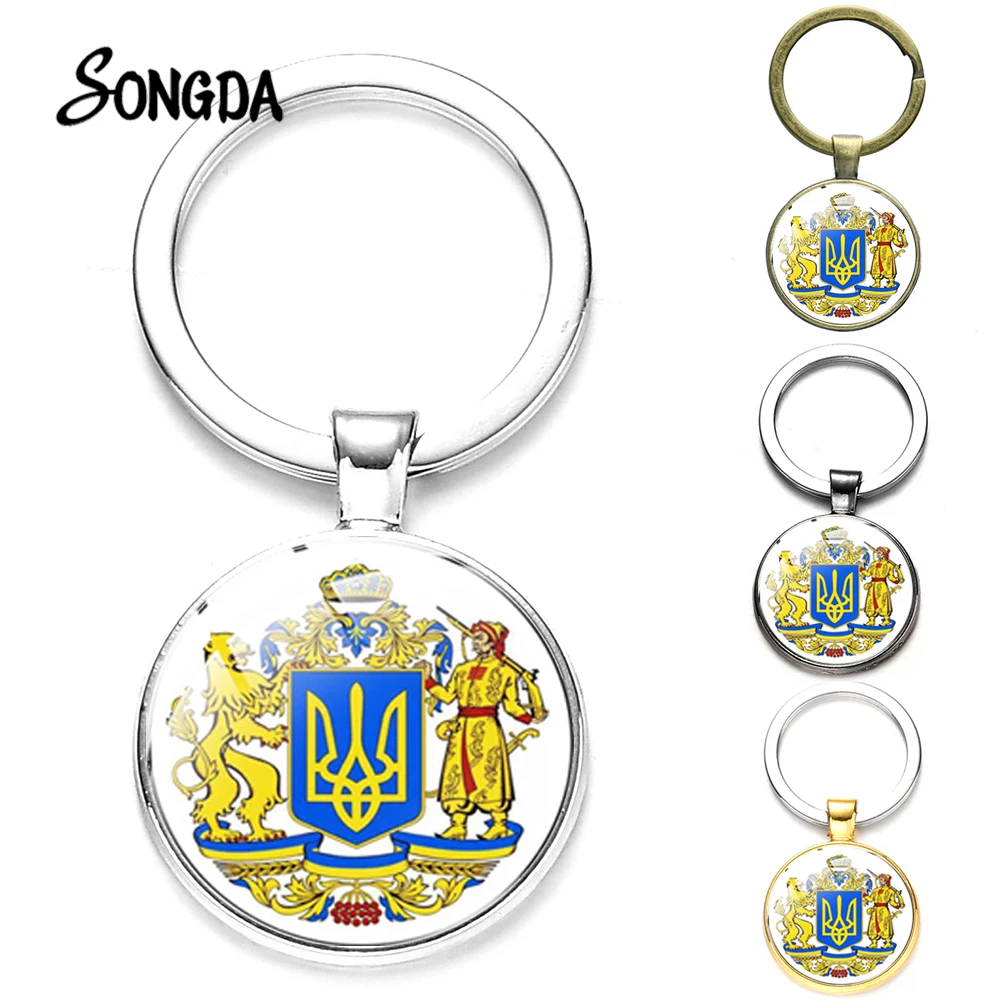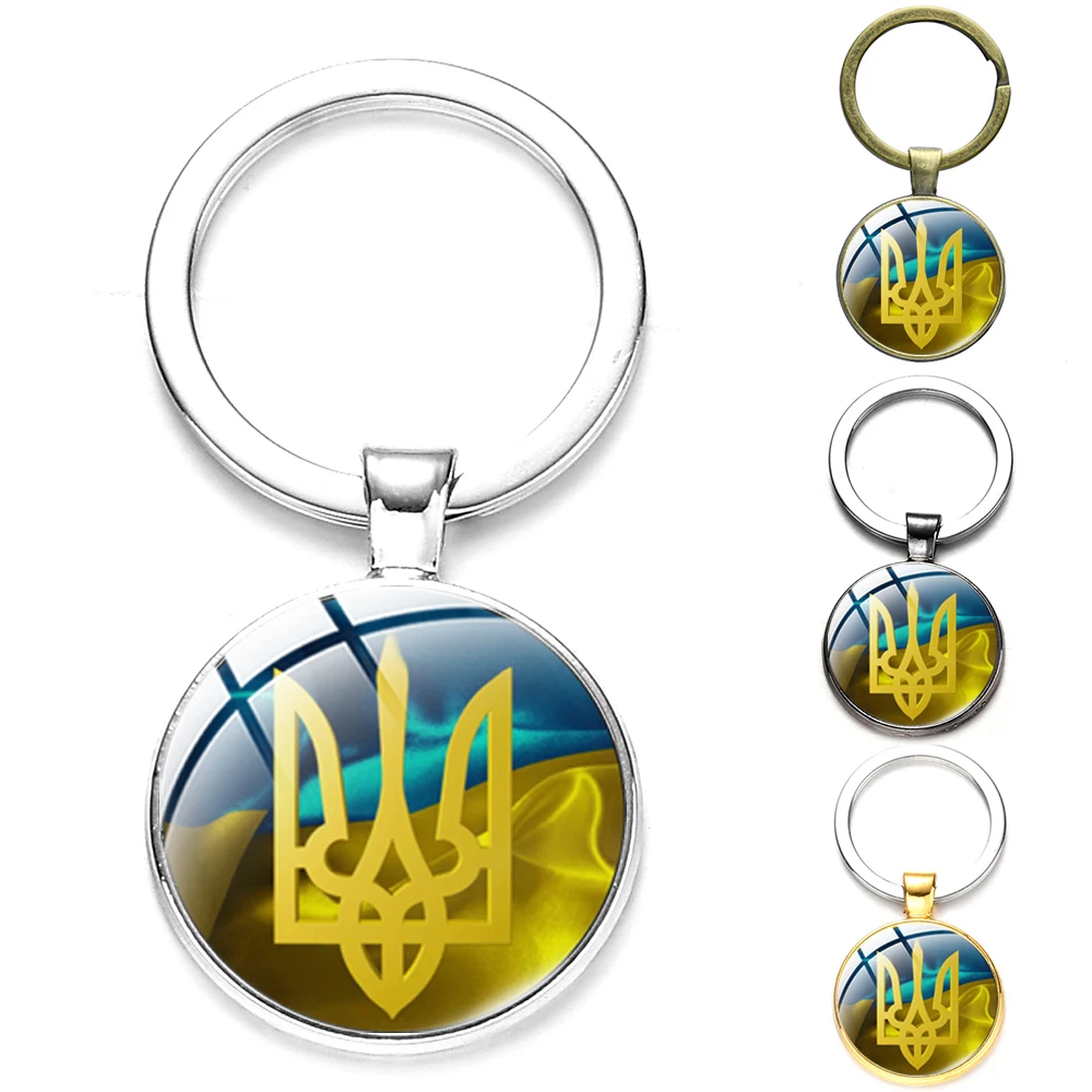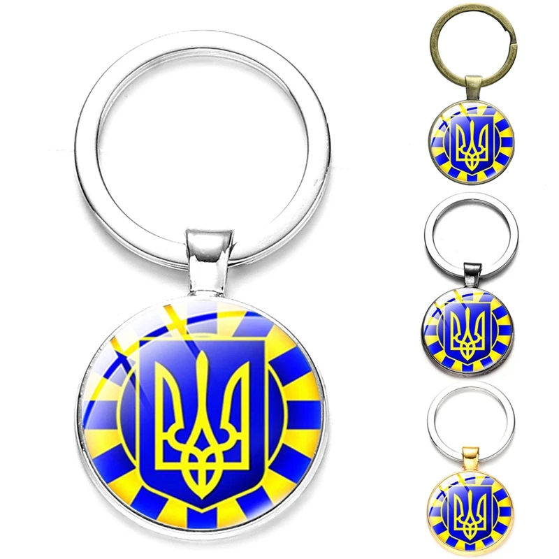 Tryzub Украина винтажный брелок для ключей Таинственный тотем шаблон стеклянный круглый кулон украинский значок сплав брелок аксессуары