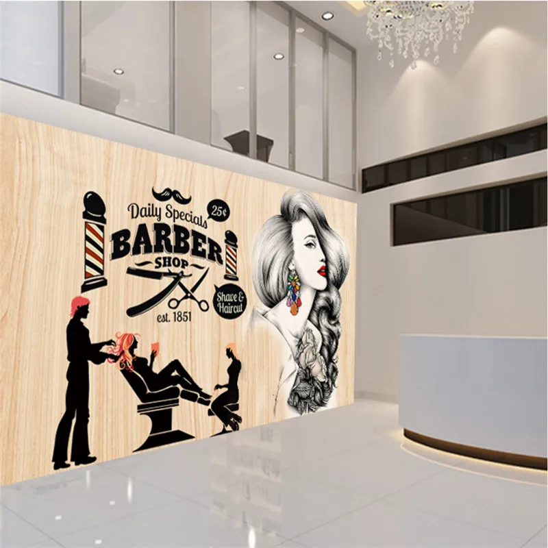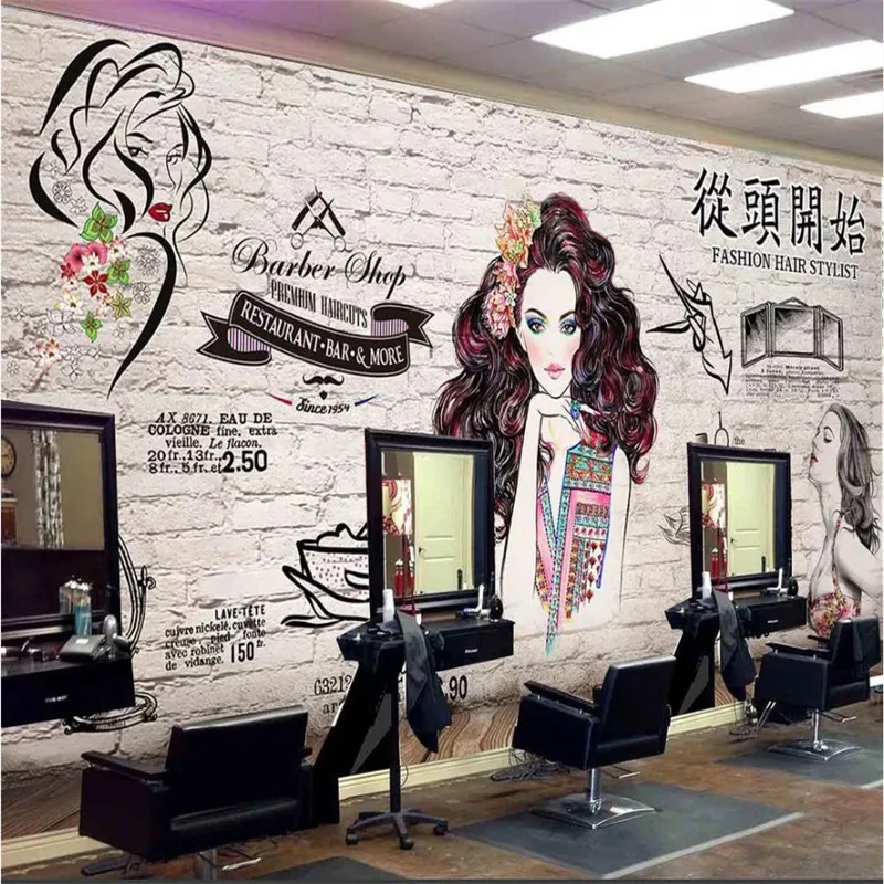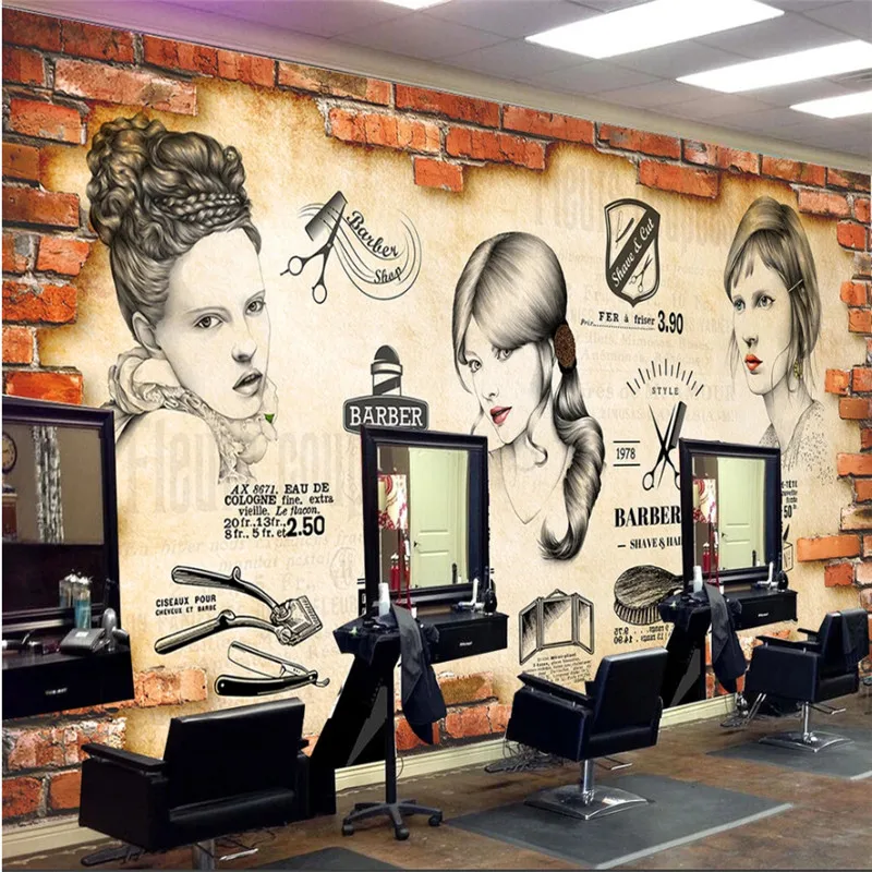 Ретро Макияж Салон красоты волосы стиль hcourse фон настенная бумага 3D Парикмахерская промышленный Декор настенная бумага 3D