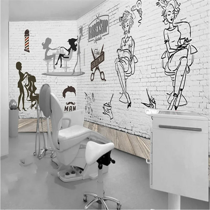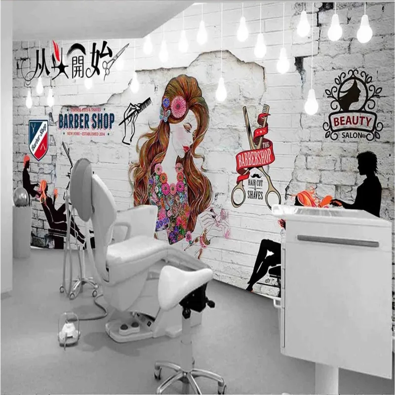 На заказ белая кирпичная стена Красота Стиль Парикмахерская настенная бумага 3D Парикмахерская промышленный Декор Фон настенная бумага 3D