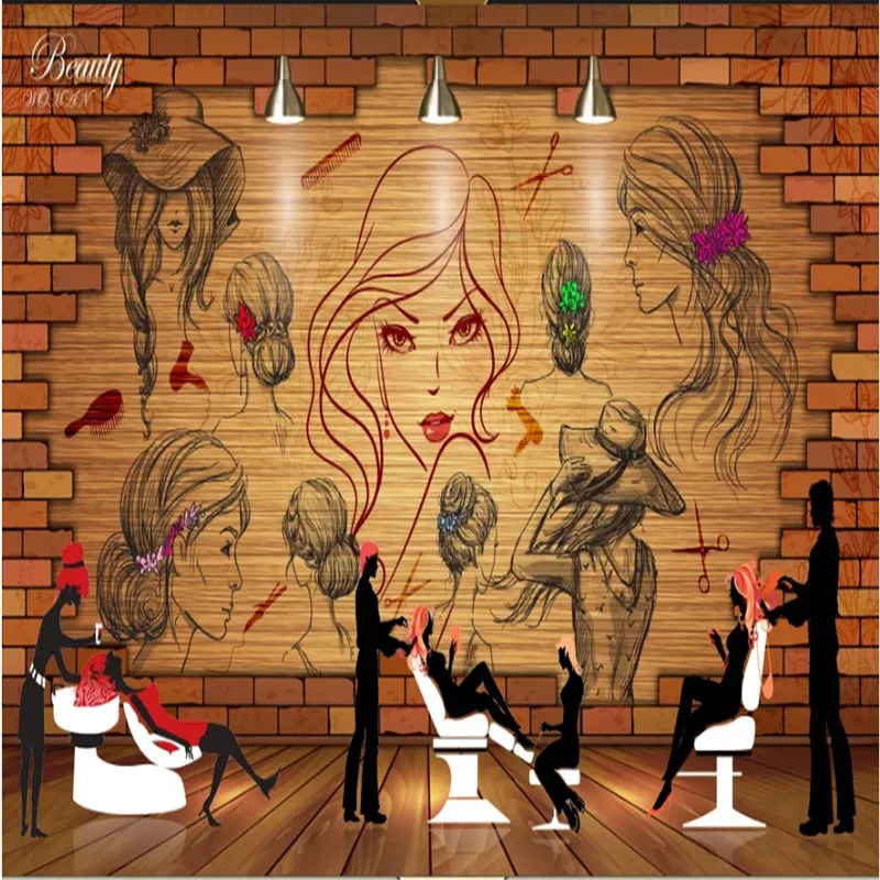 Ручная роспись Парикмахерская дамское изображение 3D кирпичная стена бумага для парикмахерской Парикмахерская Салон красоты фон настенная бумага 3D