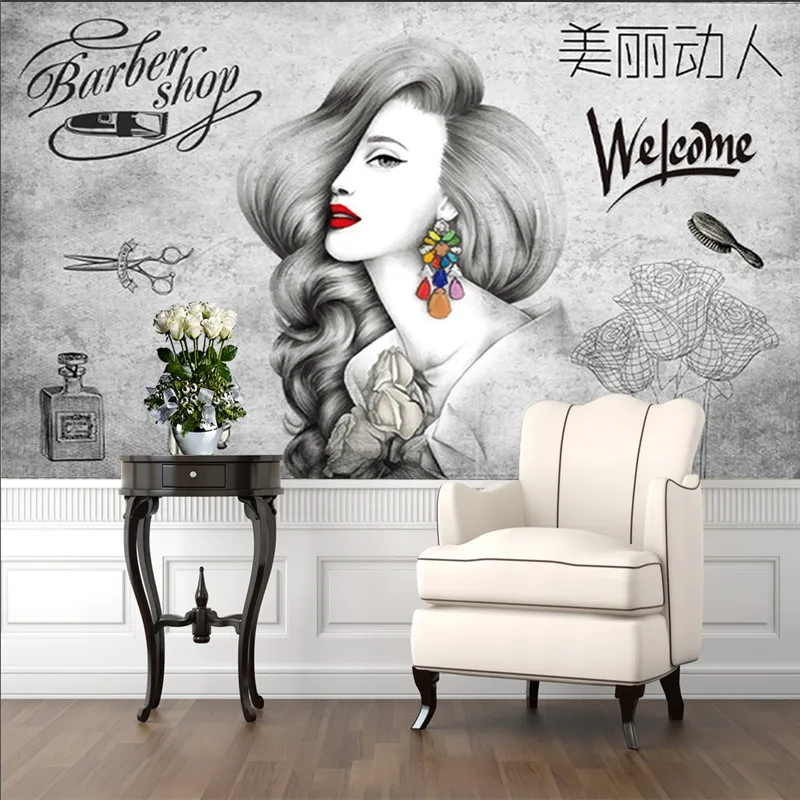 HD современная мода ручная роспись Красота Стиль Парикмахерская промышленный Декор серый фон настенная 3D обои