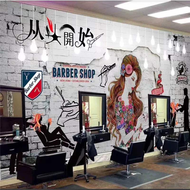 Настраиваемый парикмахерский салон красоты фон настенная бумага 3D Ретро Парикмахерская промышленный Декор настенная бумага 3D