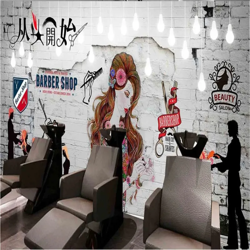 Индивидуальная Мода Стиль Парикмахерская фон настенная бумага Парикмахерская Ретро Ностальгический кирпич обои 3D салон красоты фрески