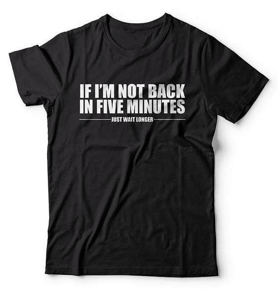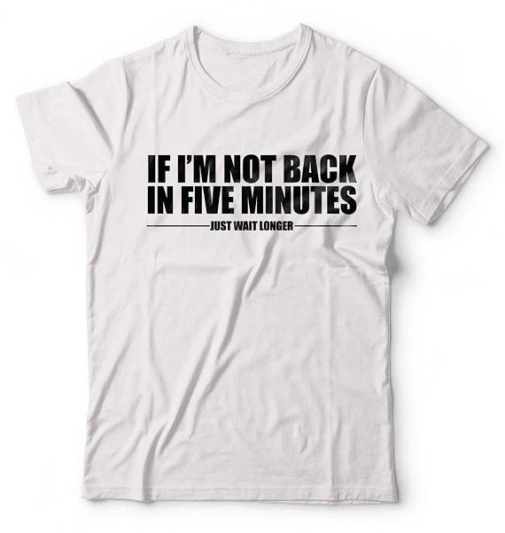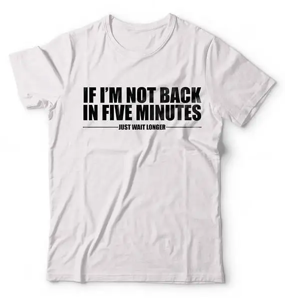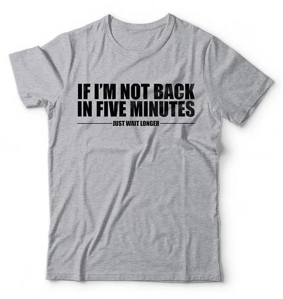 Если я не вернусь через пять минут, просто подождите больше, модная футболка унисекс, забавная футболка унисекс с цитатой, белая и серая футболка tumblr - K088