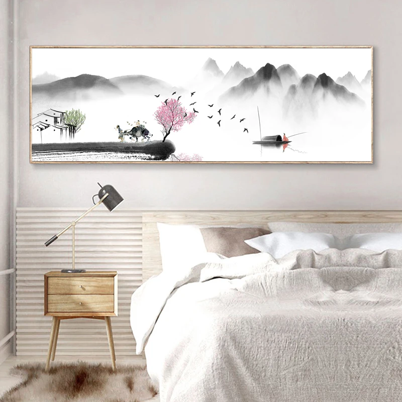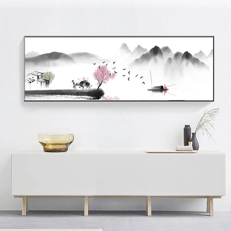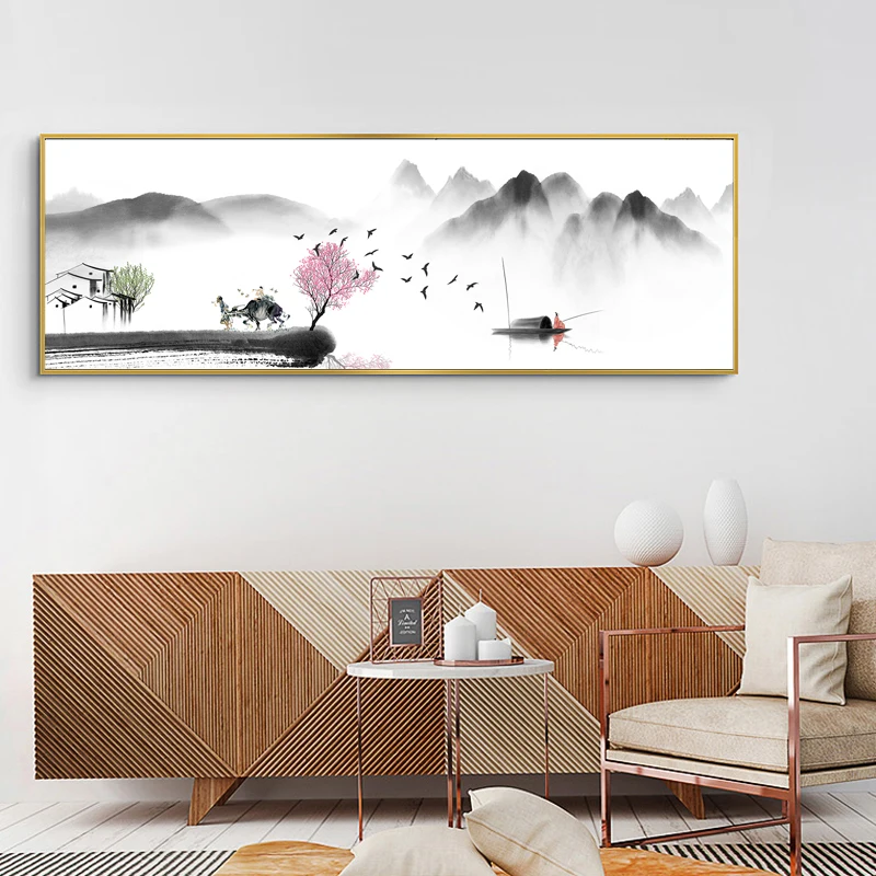 Абстрактная Картина на холсте с китайским ландшафтом дзен, ретро пл...