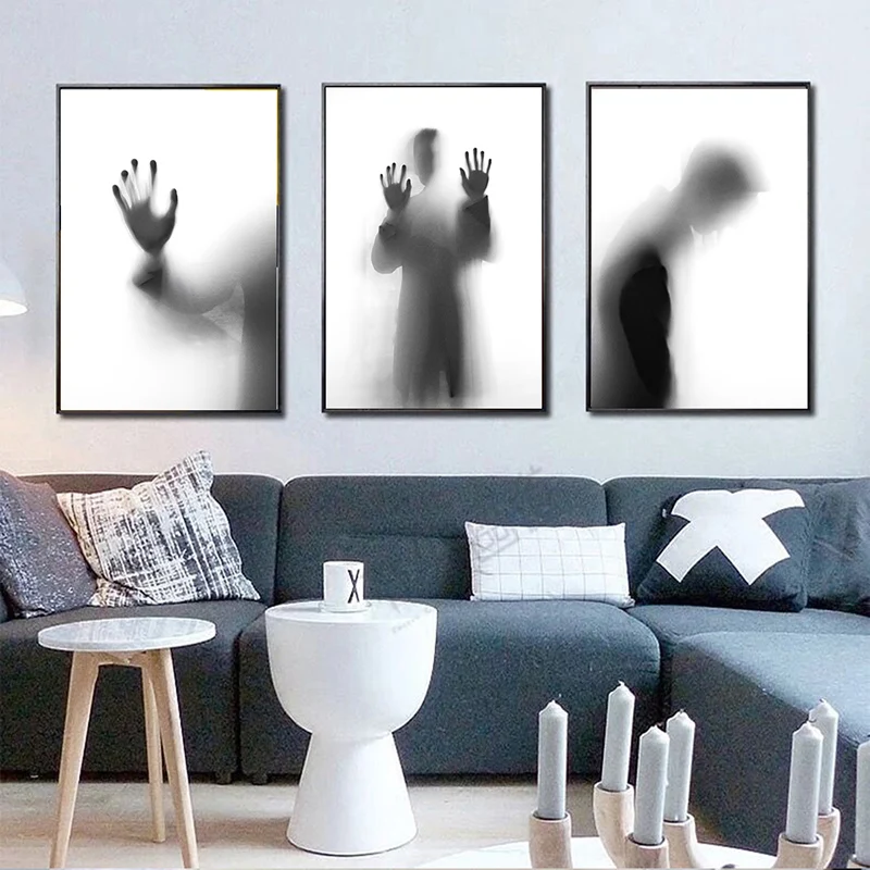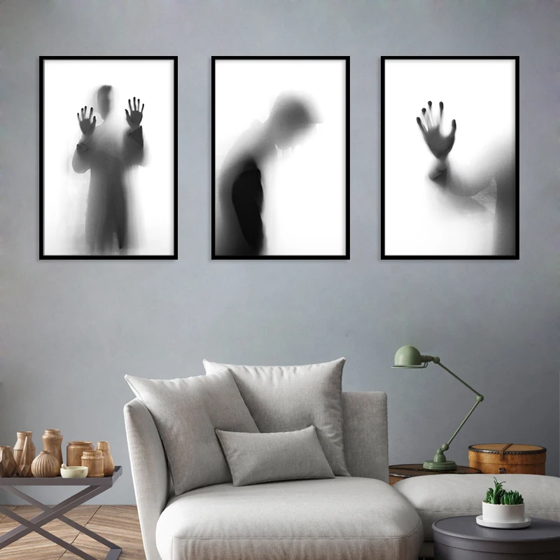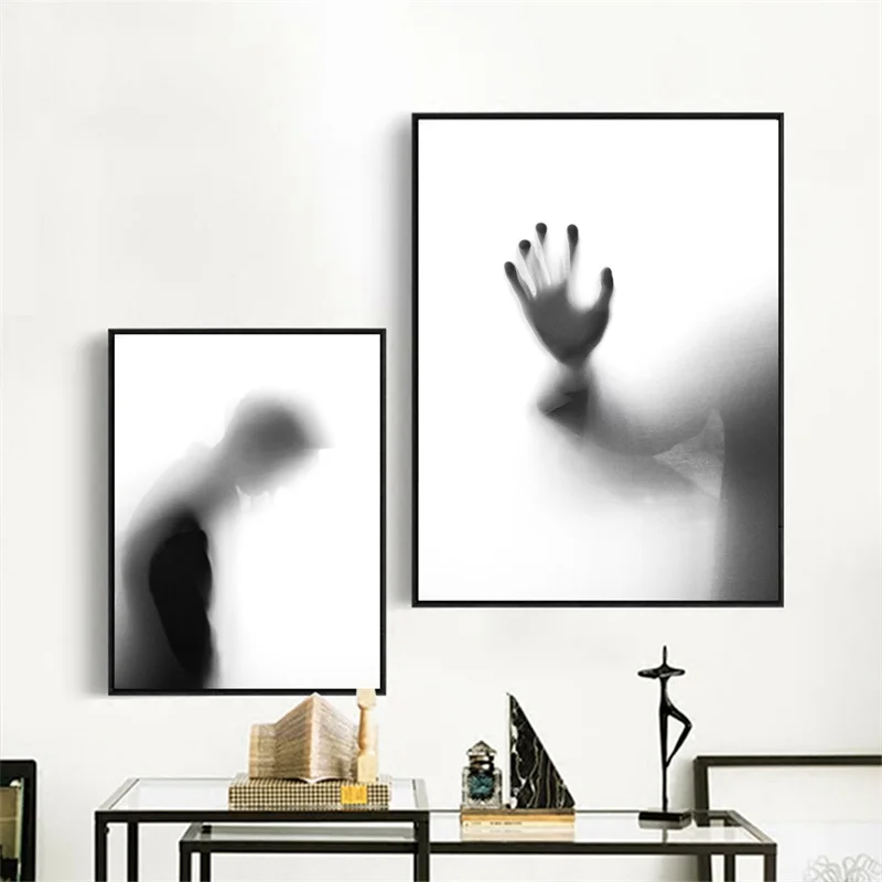 Современная Картина на холсте, Настенная картина, ужас, темная тень, стекло, отражение, печать на холсте, настенные плакаты, постеры для гостиной