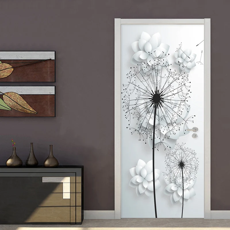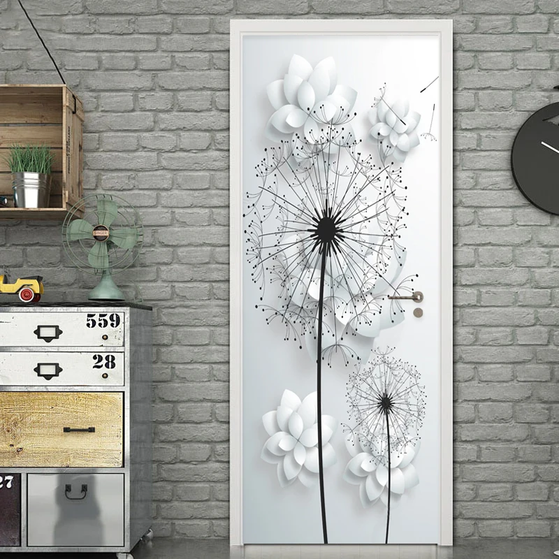Современная виниловая настенная Фреска 3D в виде одуванчика для двери, домашний декор для гостиной, спальни, настенные Стикеры из ПВХ, самоклеящиеся водонепроницаемые плакаты на дверь