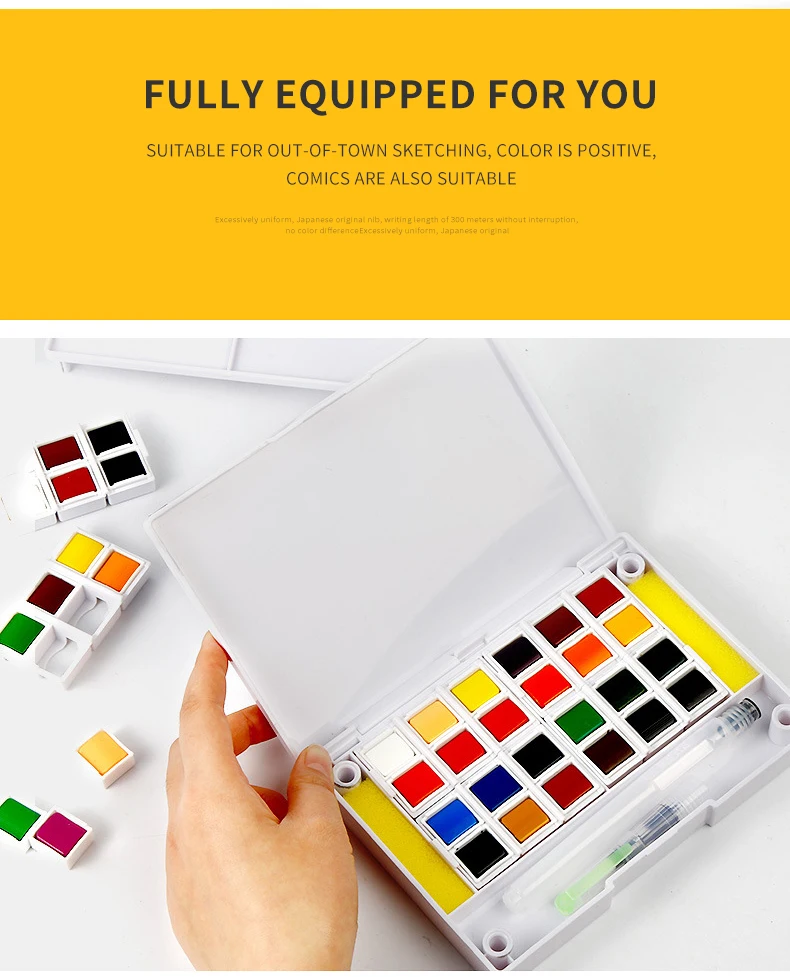 Превосходные Твердые акварельные краски 243648, пигмент с водяной кистью, подарочная ручка для рисования, прозрачная искусственная краска