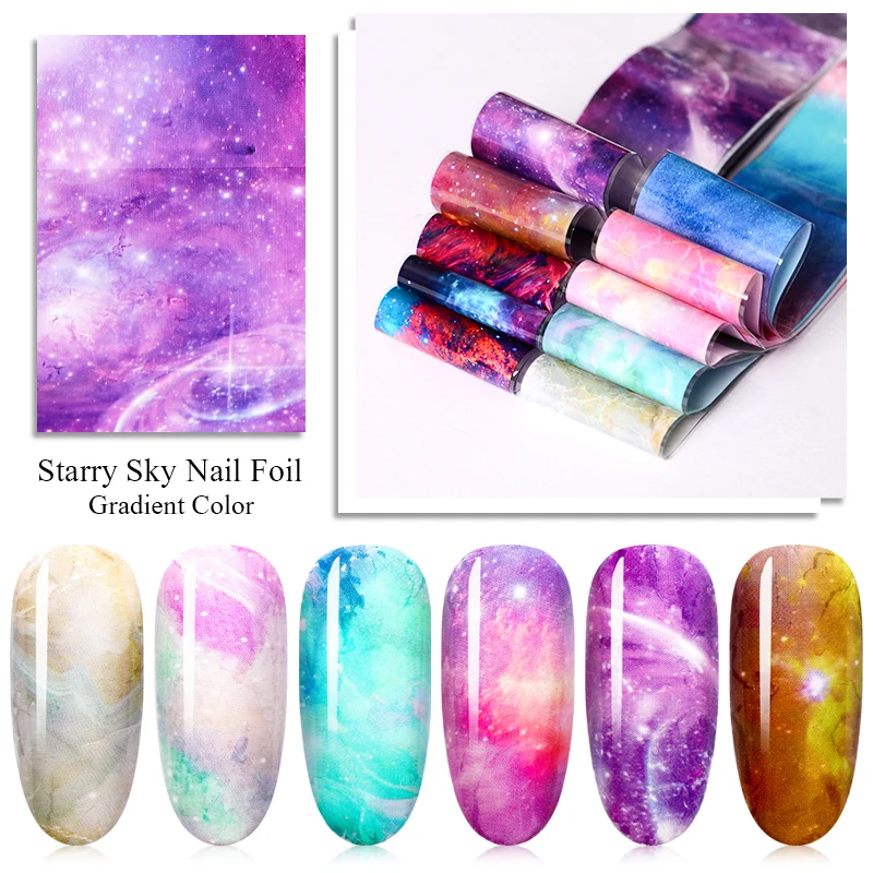 Набор наклеек для ногтей Mtssii из фольги, голографические Звездные клей, небесные обертки, переводная бумага, Переводные картинки для ногтевого дизайна, мерцающий летний гелевый слайдер
