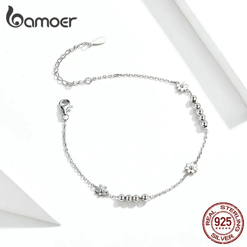 Браслет-цепочка с цветами bamoer Daisy, браслеты из натурального серебра 925 пробы с бусинами для Модные женские аксессуары, SCB146