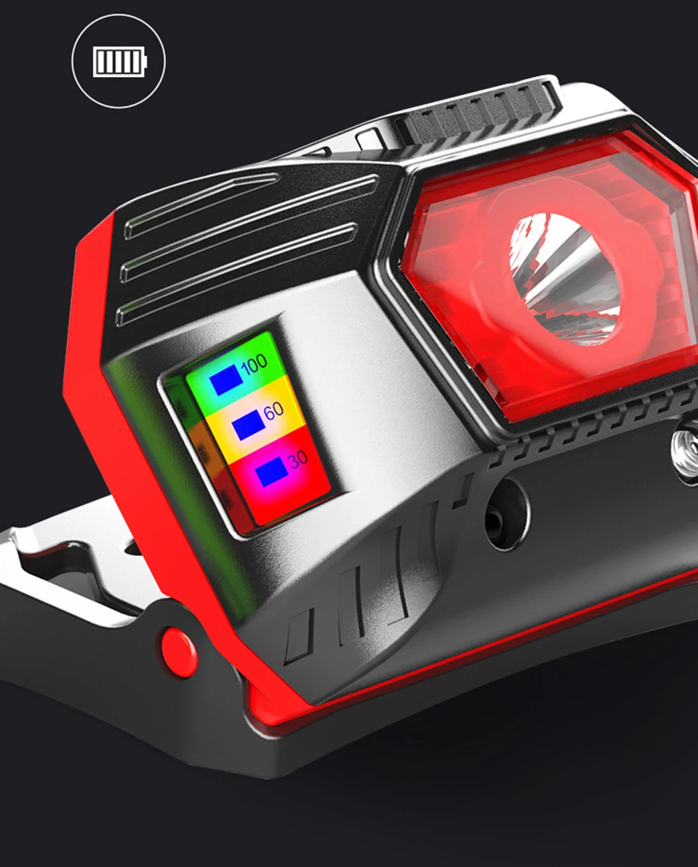 Дисплей мощностиПозвольте вам увидеть оставшуюся батареюБоковой дисплей мощности 100% / 60% / 30%Приключения на открытом воздухе, сообщите, как долго он будет у вас