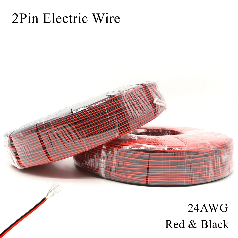 24AWG 2-контактный Электрический провод, красный, черный медный кабель из луженой меди, расширение подключения электроники, сделай сам, линия освещения, Светодиодная лента, лента, гирлянда