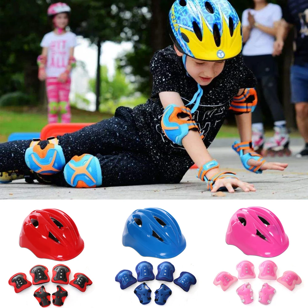 Детские налокотники для катания на роликах, 7 шт.компл., регулируемые налокотники, защитные запястья для мальчиков и девочек, детский спортивный защитный комплект для шлема