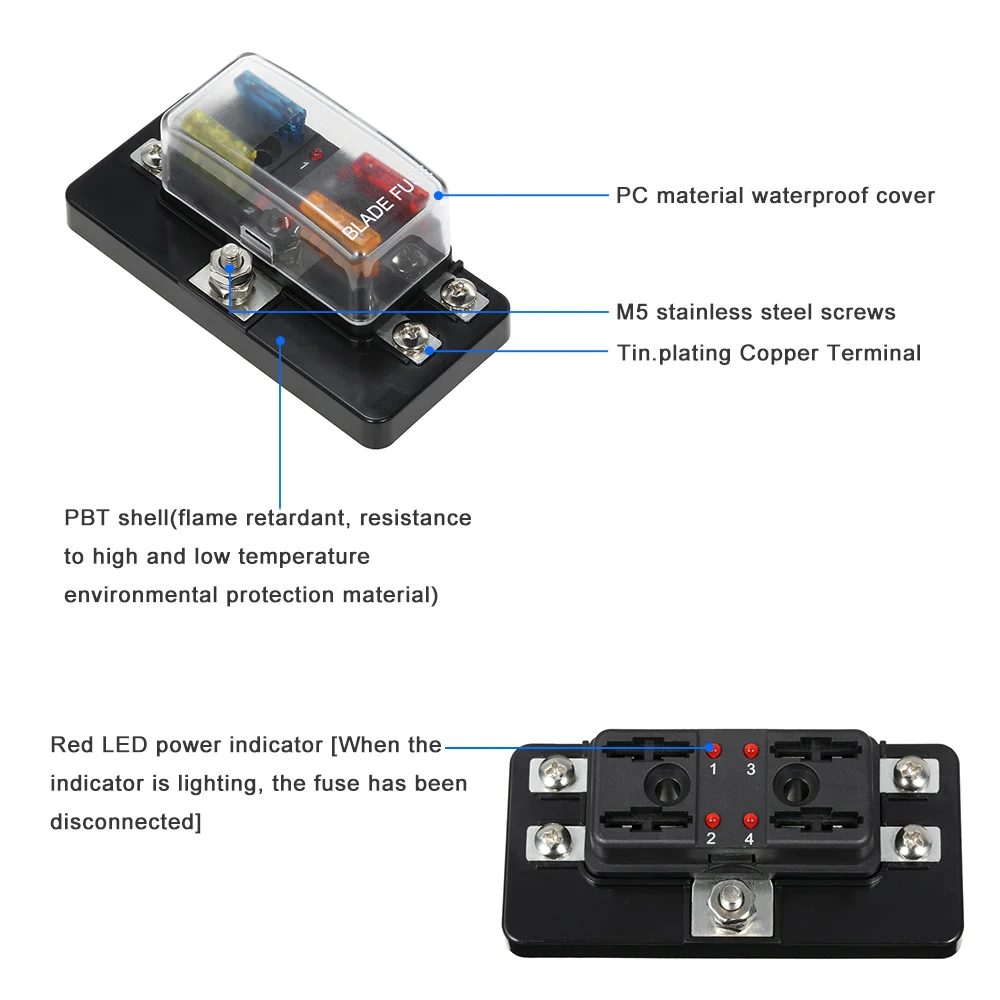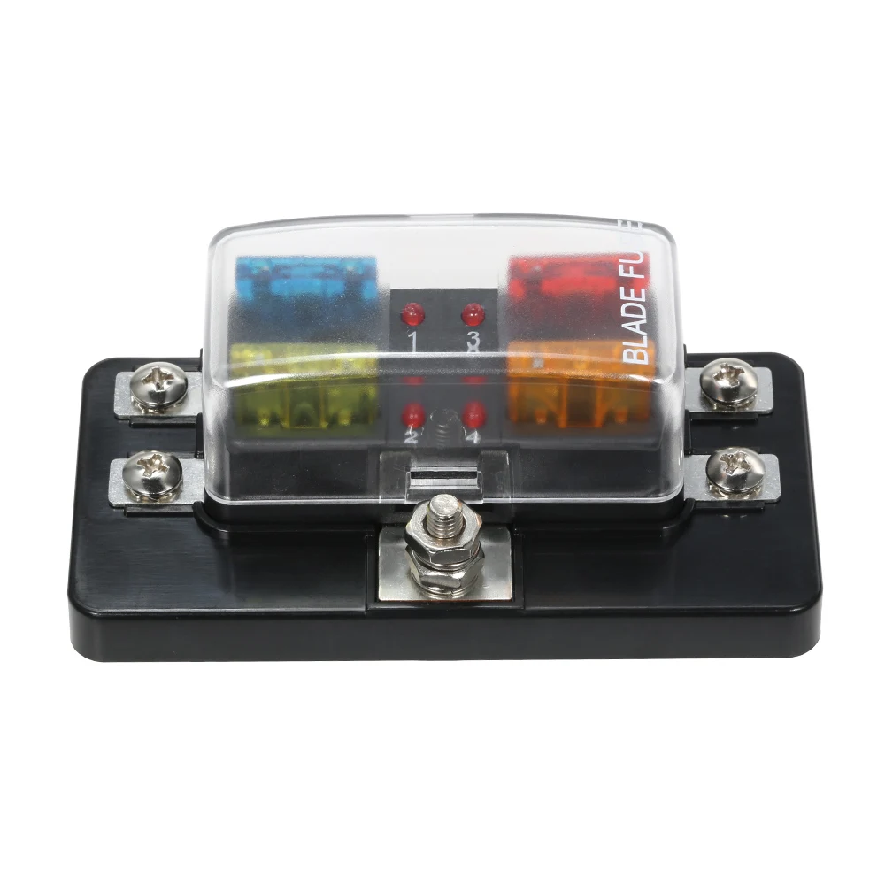 Универсальный 4-ходовой блок предохранителей со светодиодный ным индикатором индикаторный предохранитель блока для автомобиля, лодки, лодки, каравана, 12 В, 24 В, стайлинга автомобилей