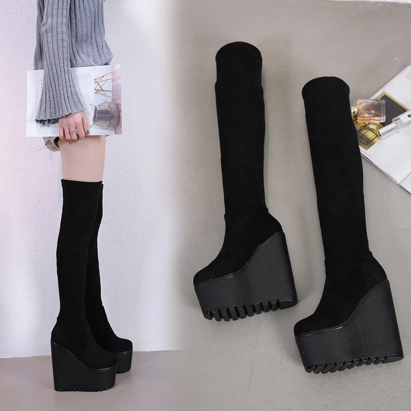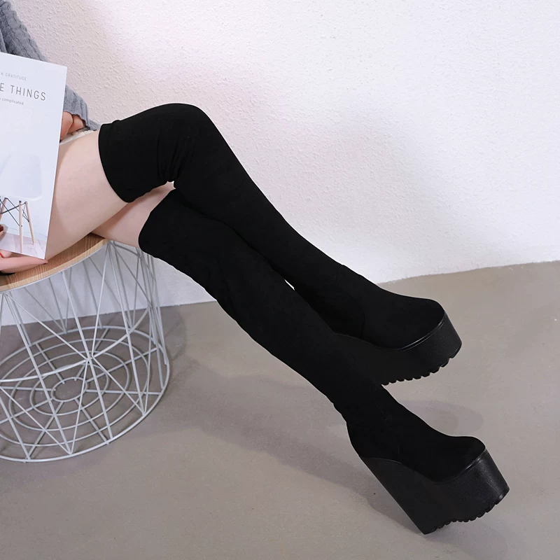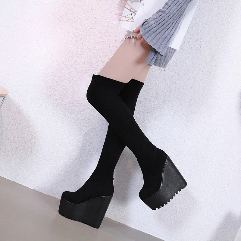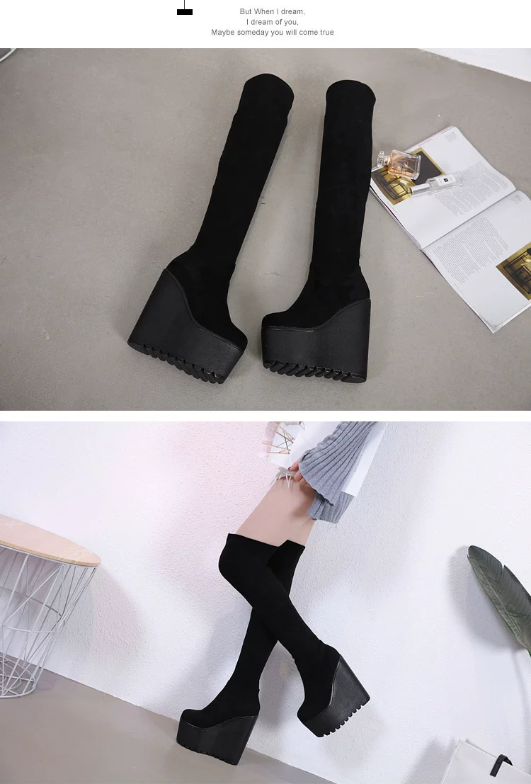 Женские сапоги выше колена, на толстой подошве 16 см, в европейском и американском стиле, новинка 2020