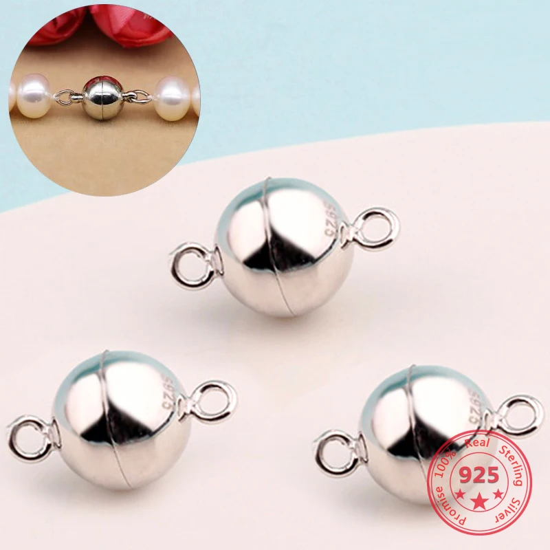 Фурнитура серебряного цвета 925 пробы, в форме шара, магнитная застежка, конвертер 6 мм 8 мм, изготовление браслета, ожерелья, украшения, аксессуары