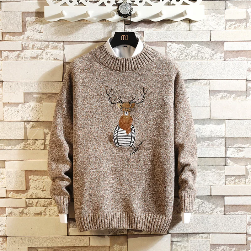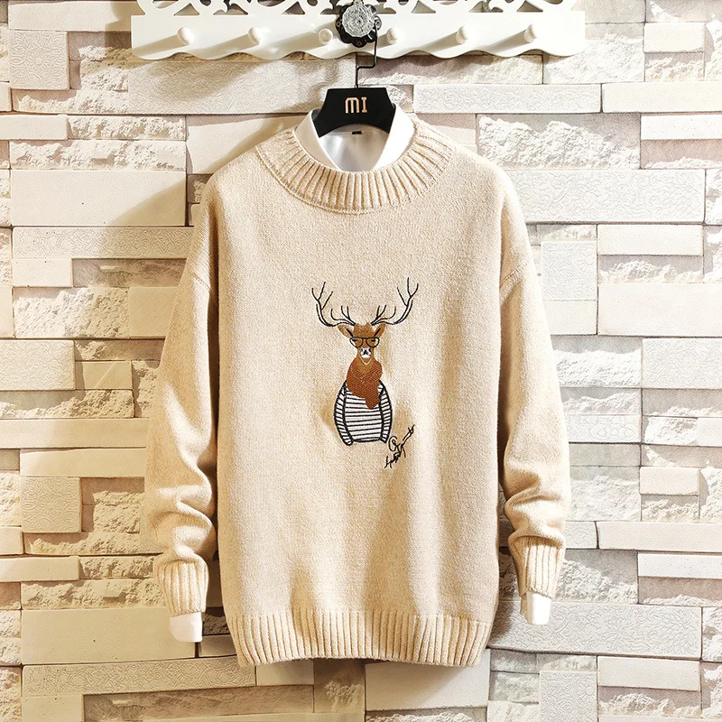 2019 Зимний вязаный свитер мужской модный Рождественский приталенный свитер с вышивкой мужской осенний пуловер с длинным рукавом и круглым вырезом размера плюс