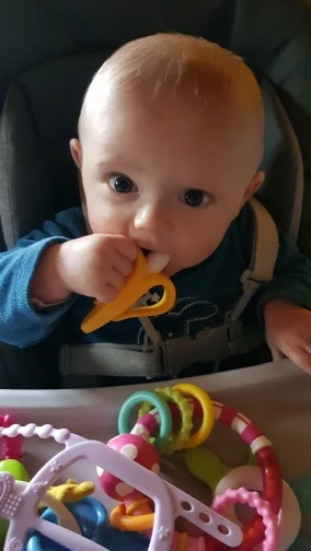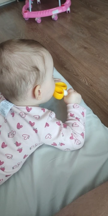 Отличный прорезыватель! Удобно держать малышу. Со своей функцией справляется на 5.