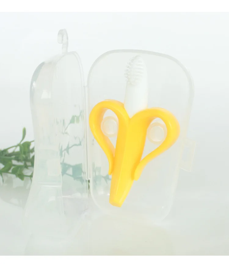 Детская силиконовая учебная зубная щетка BPA Free в форме бананов Безопасный детский Прорезыватель для зубов жевательные игрушки Прорезыватель кольцо подарок для младенцев детская, жевательная