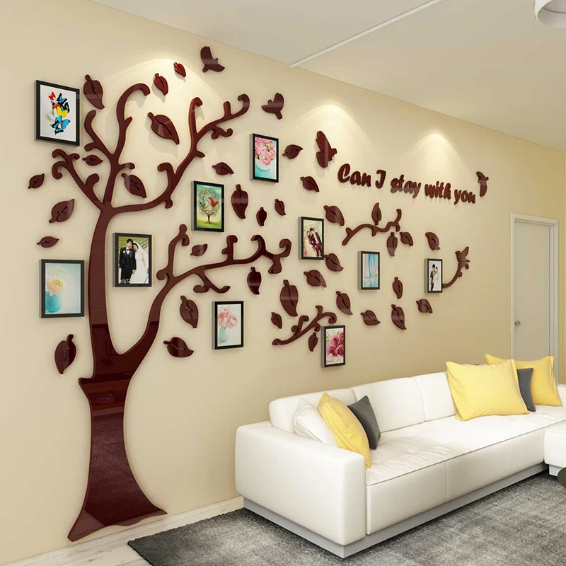 3d акриловое дерево фото наклейки на стену в раме хрустальные зеркальные наклейки Наклейка на ТВ фон настенная Diy семейная фоторамка Настенный декор