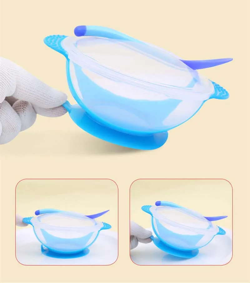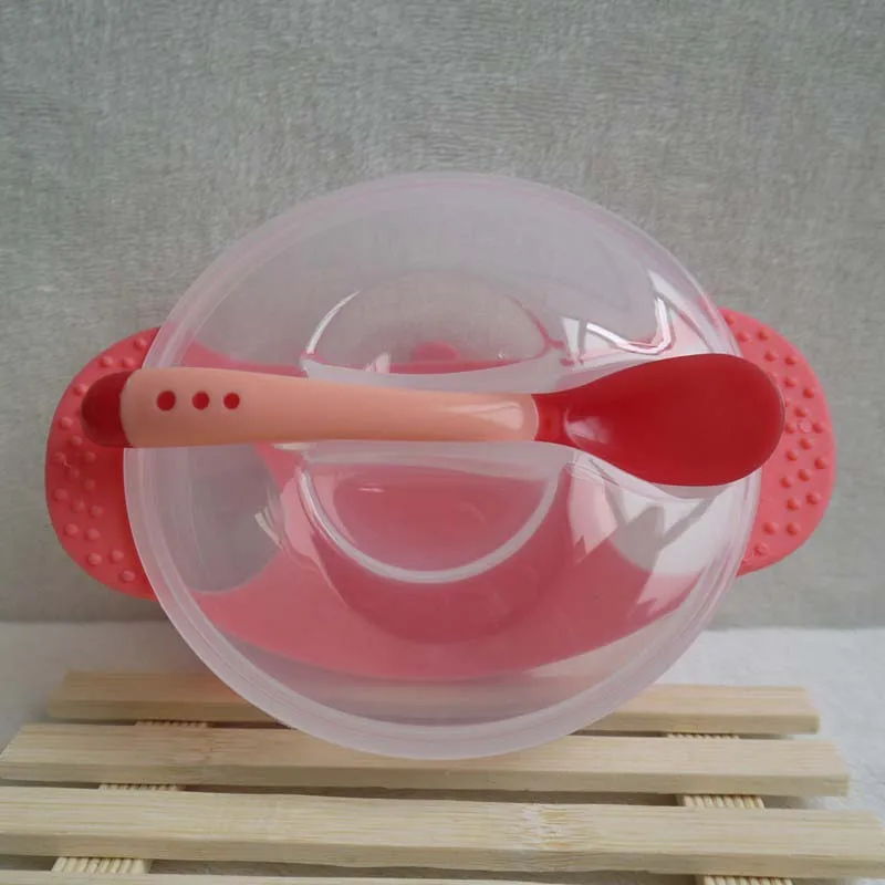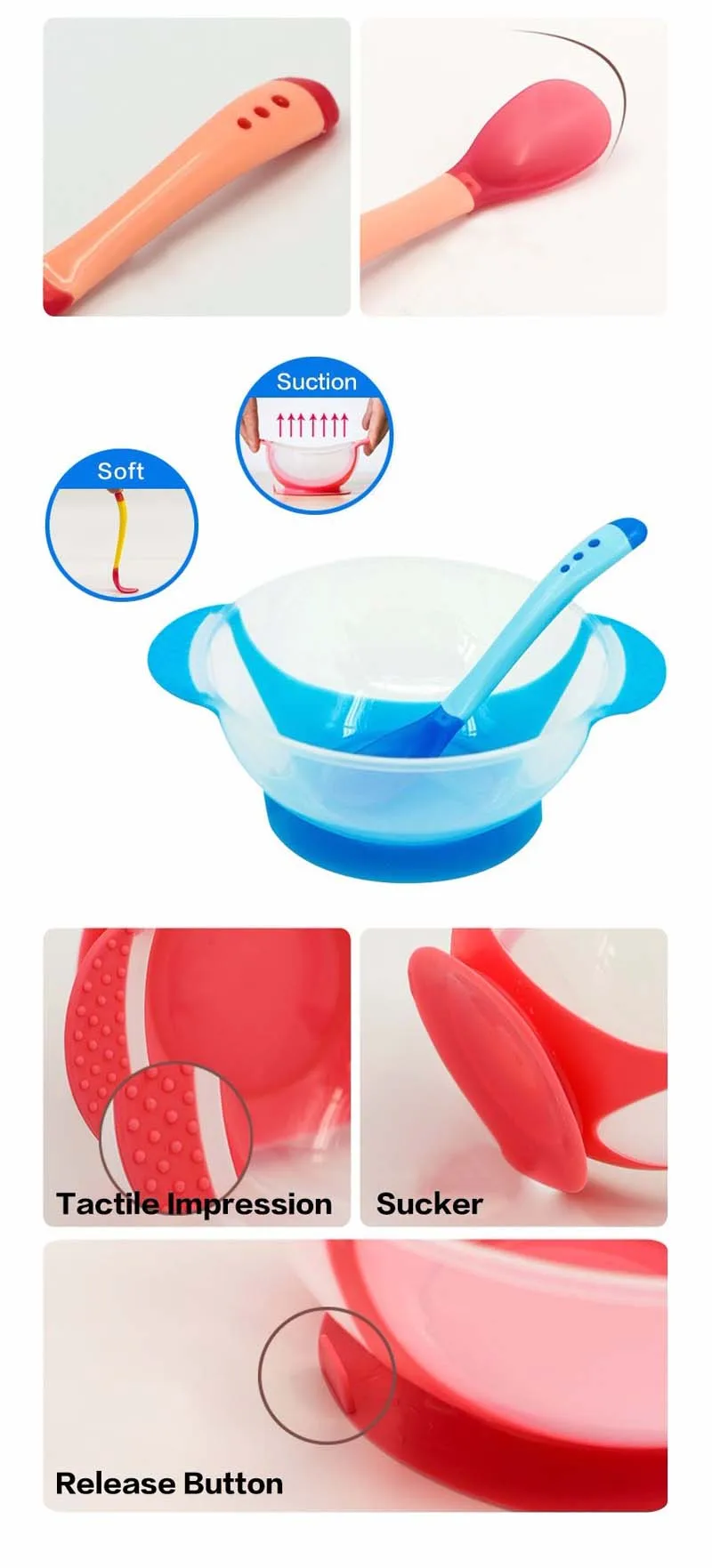 Детская посуда, Детские Обучающие блюда с присоской, миска для еды, температурная Чувствительная ложка, миска для кормления ребенка Safebow