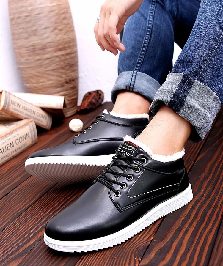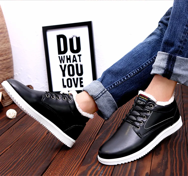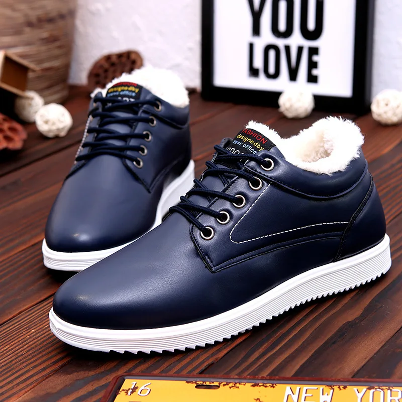 Мужские шерстяные кроссовки, Повседневная Теплая обувь, на шнуровке, Нескользящие, на плоской подошве, на осень-зиму