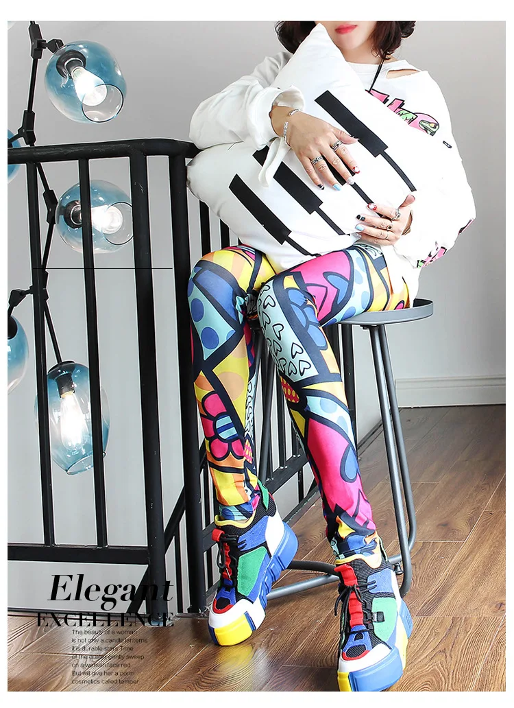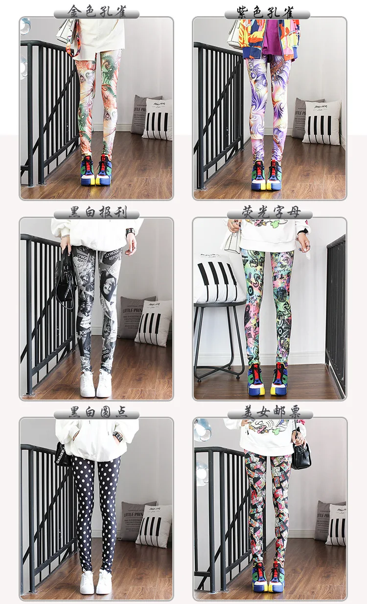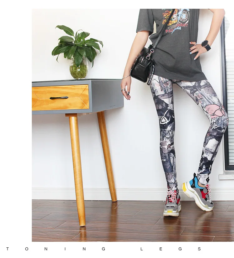 Новые сексуальные леггинсы в западном стиле, камуфляжные неоновые бесшовные леггинсы, газета, готика, панк, рок, леггинсы для фитнеса