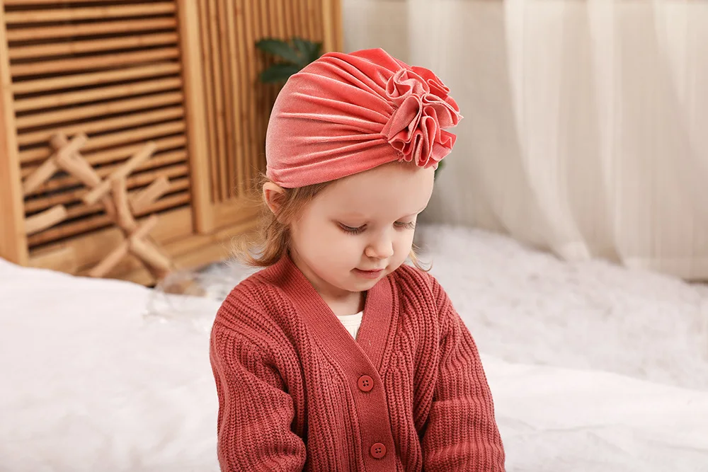 15 шт.лот детский тюрбан, шапки, индийские бархатные шапочки для девочек, мягкая хлопковая шапка для новорожденных, милые детские шапки-тюрбаны, Детские аксессуары для волос
