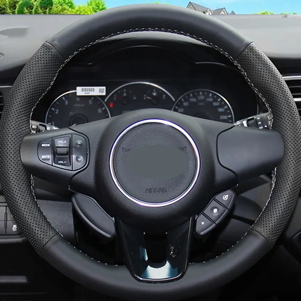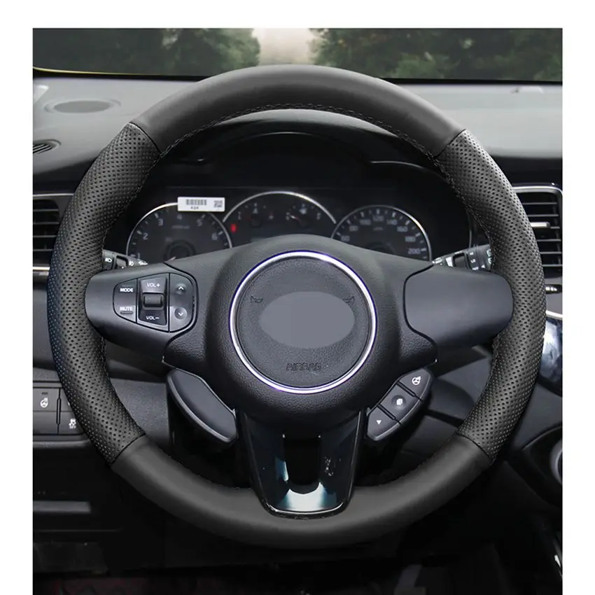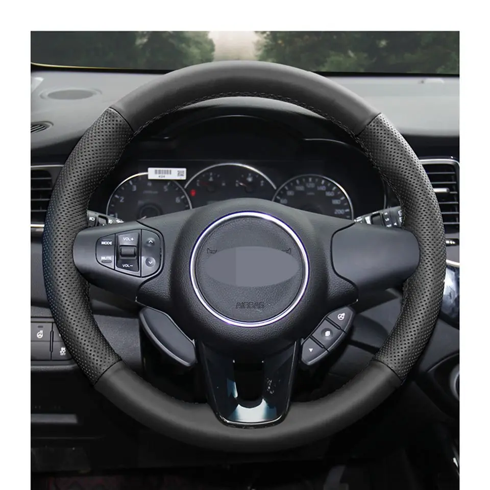 Чехол на руль из натуральной кожи, Прошитые вручную Чехлы рулевого колеса автомобиля для Kia Carens 2013 - 2019