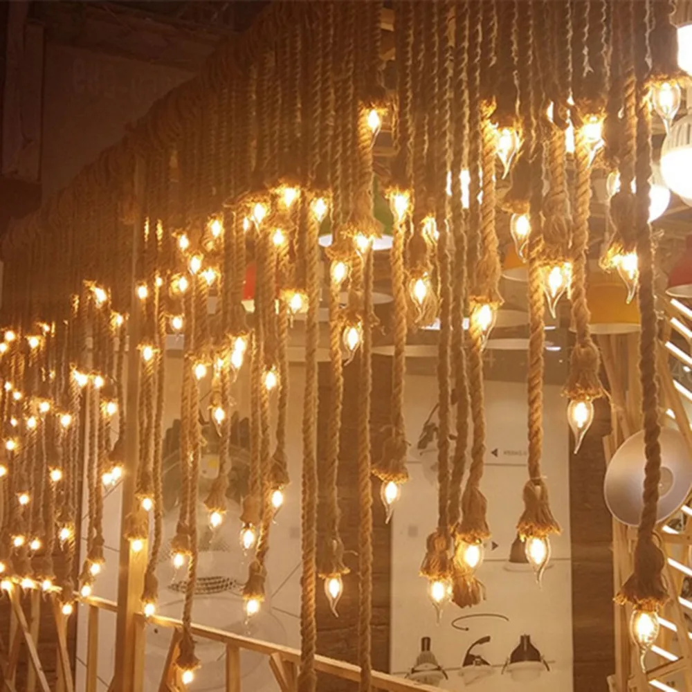 E27 промышленный подвесной светильник с двойной головкой винтажная лампочка эдисона на веревке домашний Ресторан тематические вечерние украшения пеньковая веревка