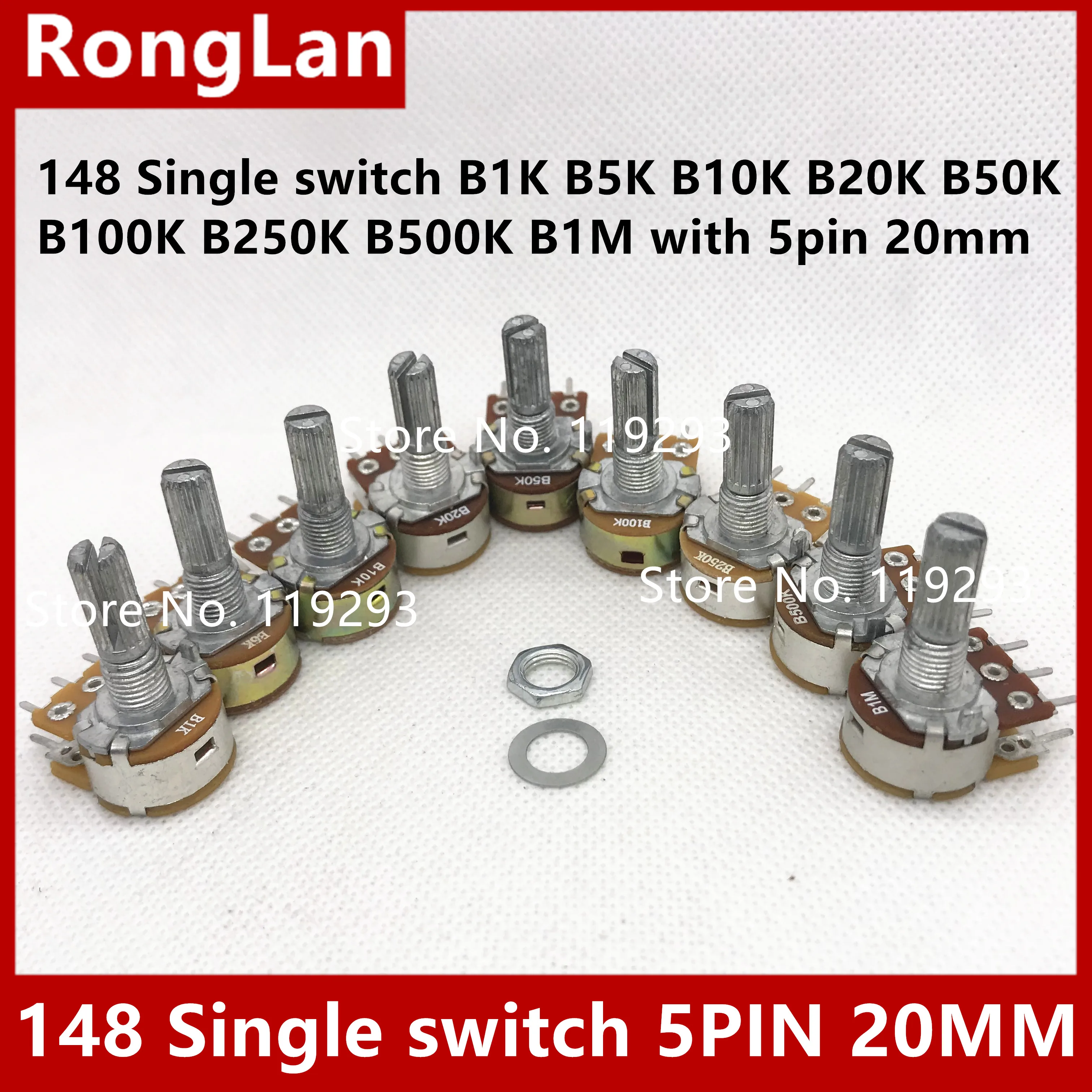 Потенциометр с регулируемым сопротивлением, увлажнитель 148, один B1K B5K B10K B20K B50K B100K B250K B500K B1M с переключателем 5 контактов 20 мм-5 шт.