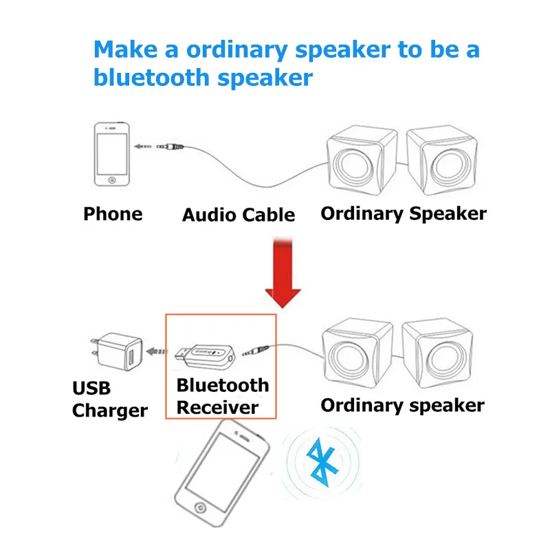 Черный, белый Bluetooth 5,0 беспроводной Аудиоприемник USB Power 3,...