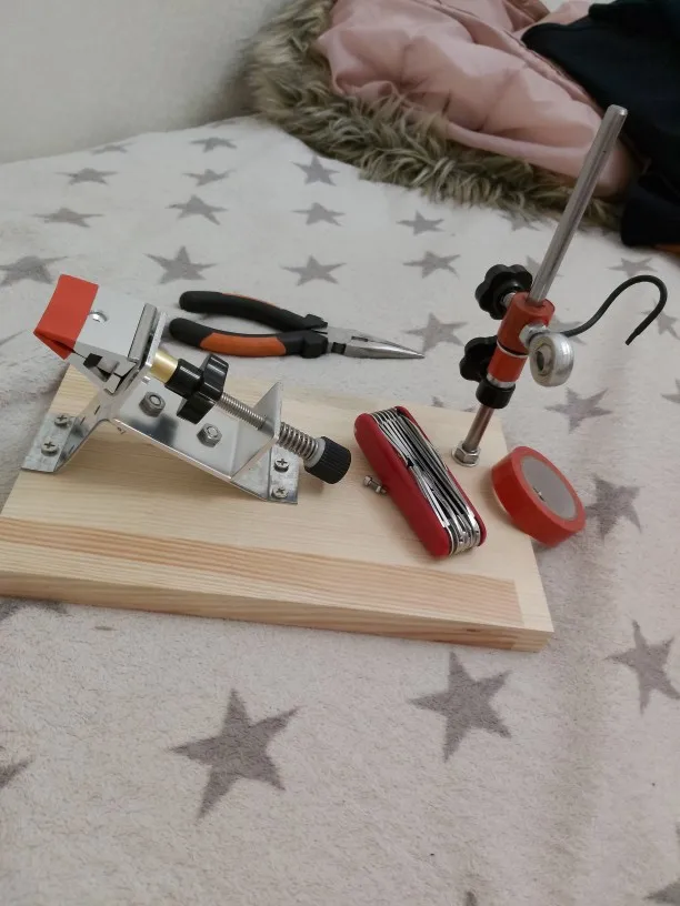 Не такая здоровая как на картинке, но стало удобнее, без перекручивания зажима ключом. И всё таки не смог добиться угла заточки для большой фаски, но удобнее стало.
