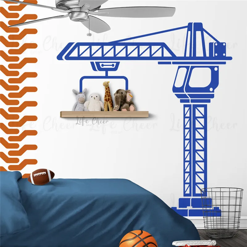 Декор для детской комнаты, виниловая настенная наклейка с краном, большие строительные наклейки для грузовиков, настенные художественные наклейки, фотообои для мальчиков, плакат в игровой комнате AC522
