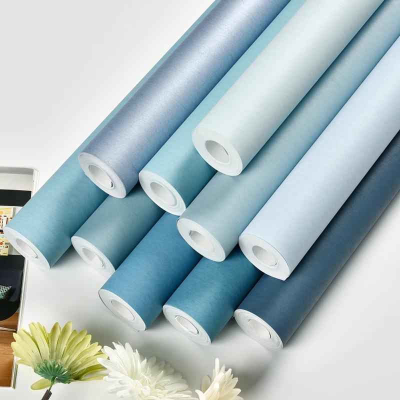 Улучшенная домашняя синяя серия, Настенная бумага, Классическая однотонная контактная бумага из древесного волокна для фотобумаги