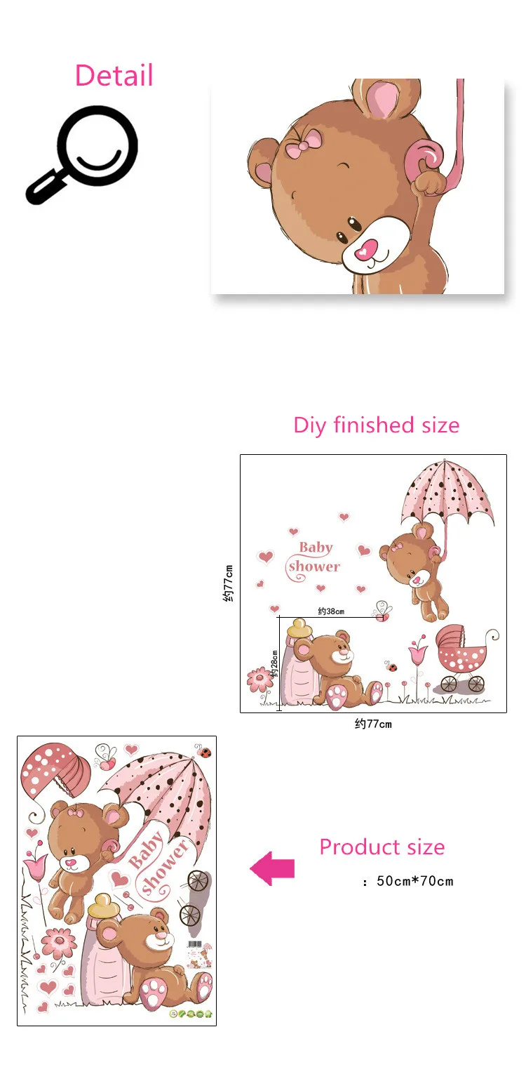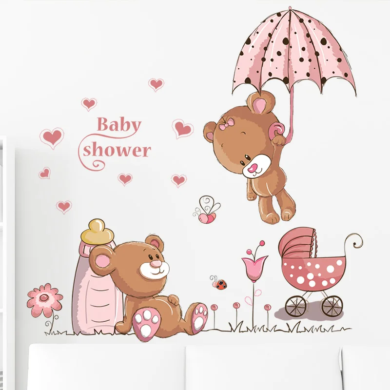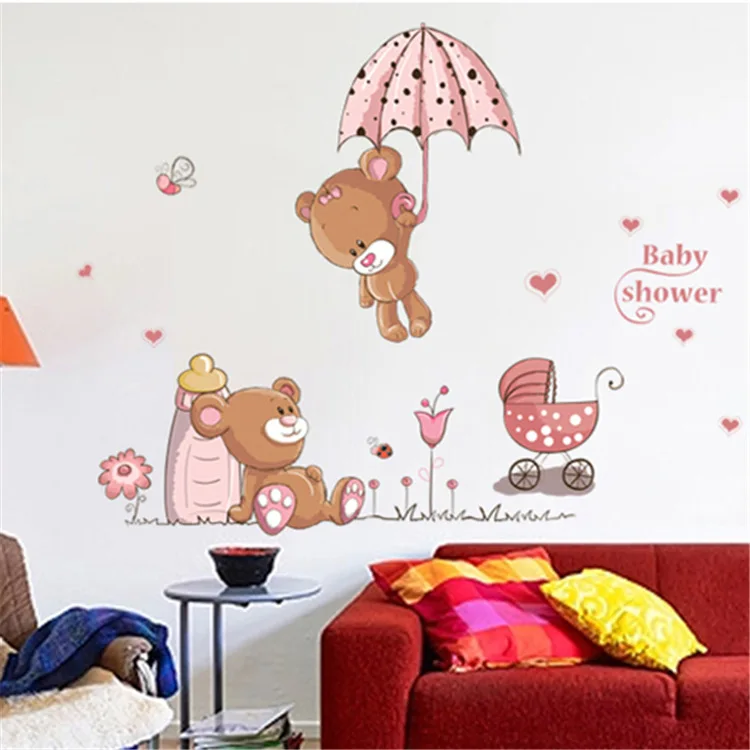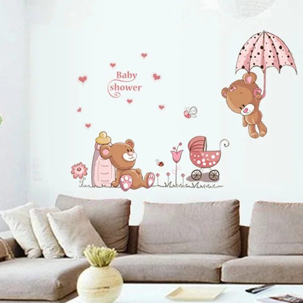 Мультфильм для малышей, с милым медведем наклейки на стену зонтик для кормления бутылочка для девочек комната детская спальня warobe украшения росписи Искусство животных наклейка