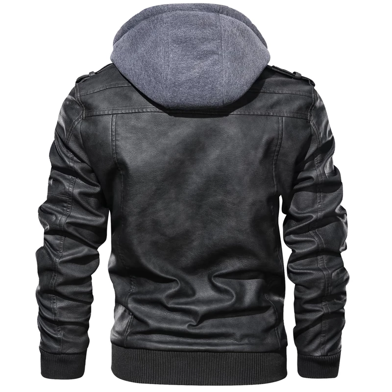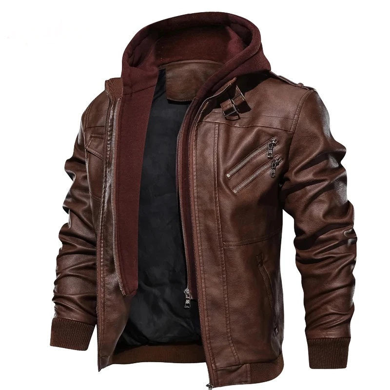 Мужская Зимняя Толстая кожаная куртка, мотоциклетная верхняя одежда с капюшоном, мужские флисовые Теплые повседневные кожаные куртки, Мужская ветровка-бомбер